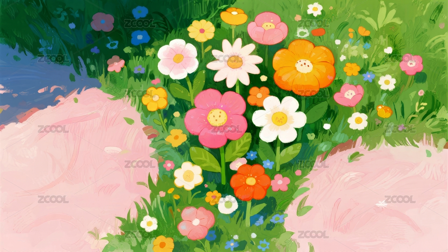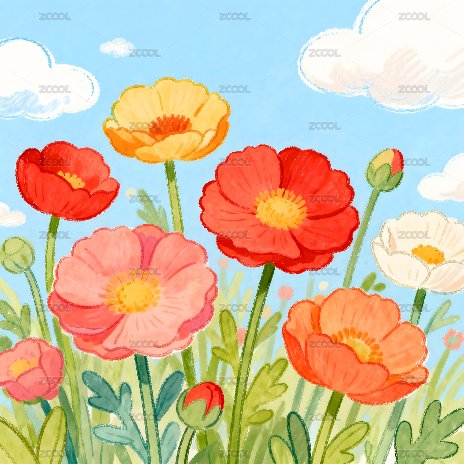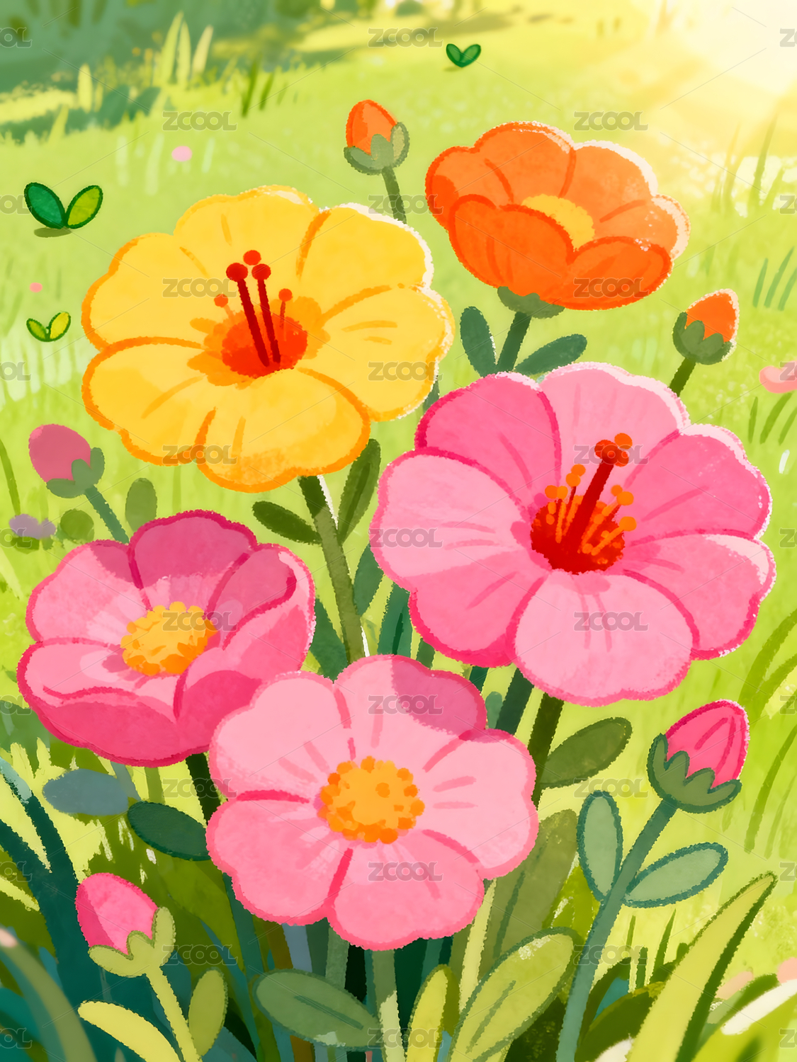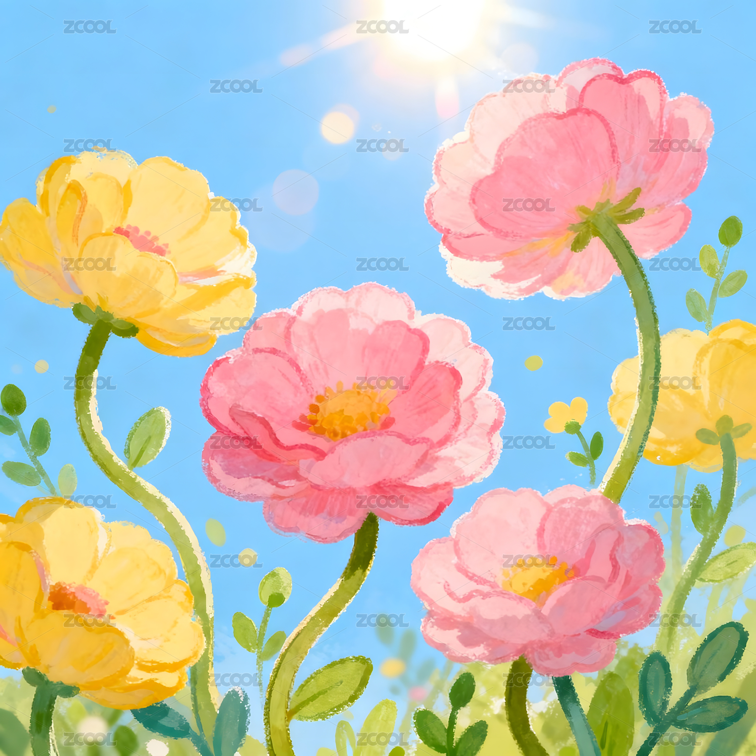 插画,花朵,清新,鲜花,盛开,植物,花瓣,层次,叶子,花蕊