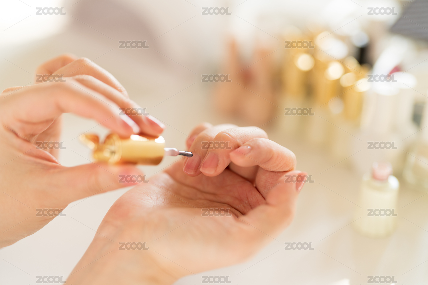 女人手拿彩绘笔把碎钻甲油胶画在指甲上