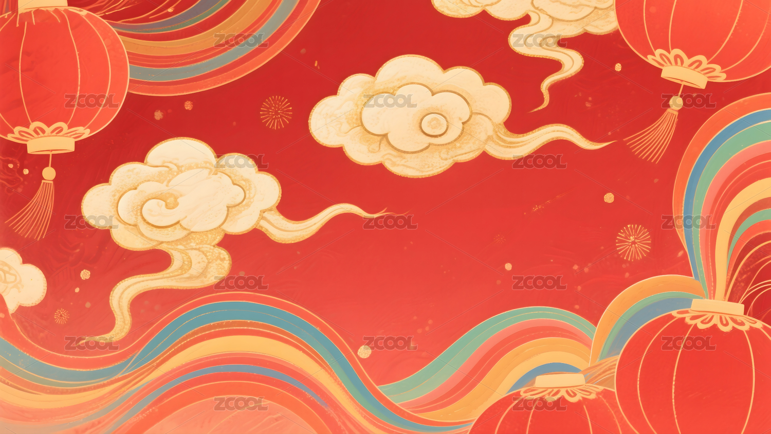 灯笼,祥云,中国风,云朵,山脉,写意,山峦,背景,壁纸,传统