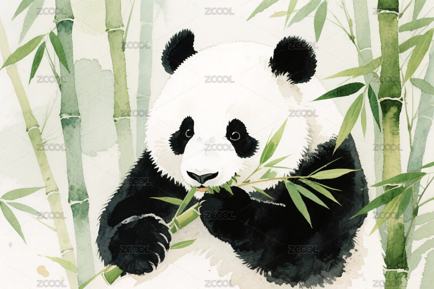 水彩熊猫啃竹图
