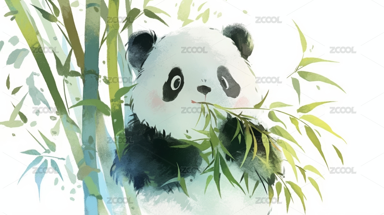 水墨熊猫雅致感竹林场景