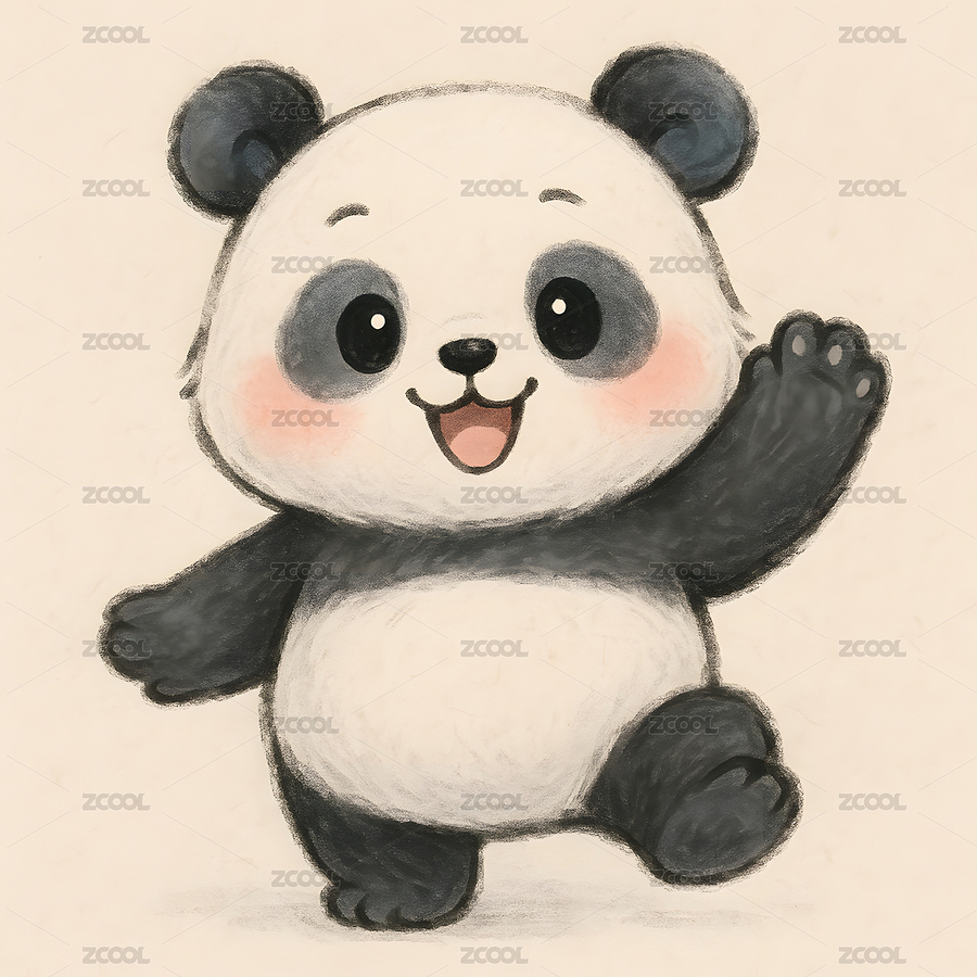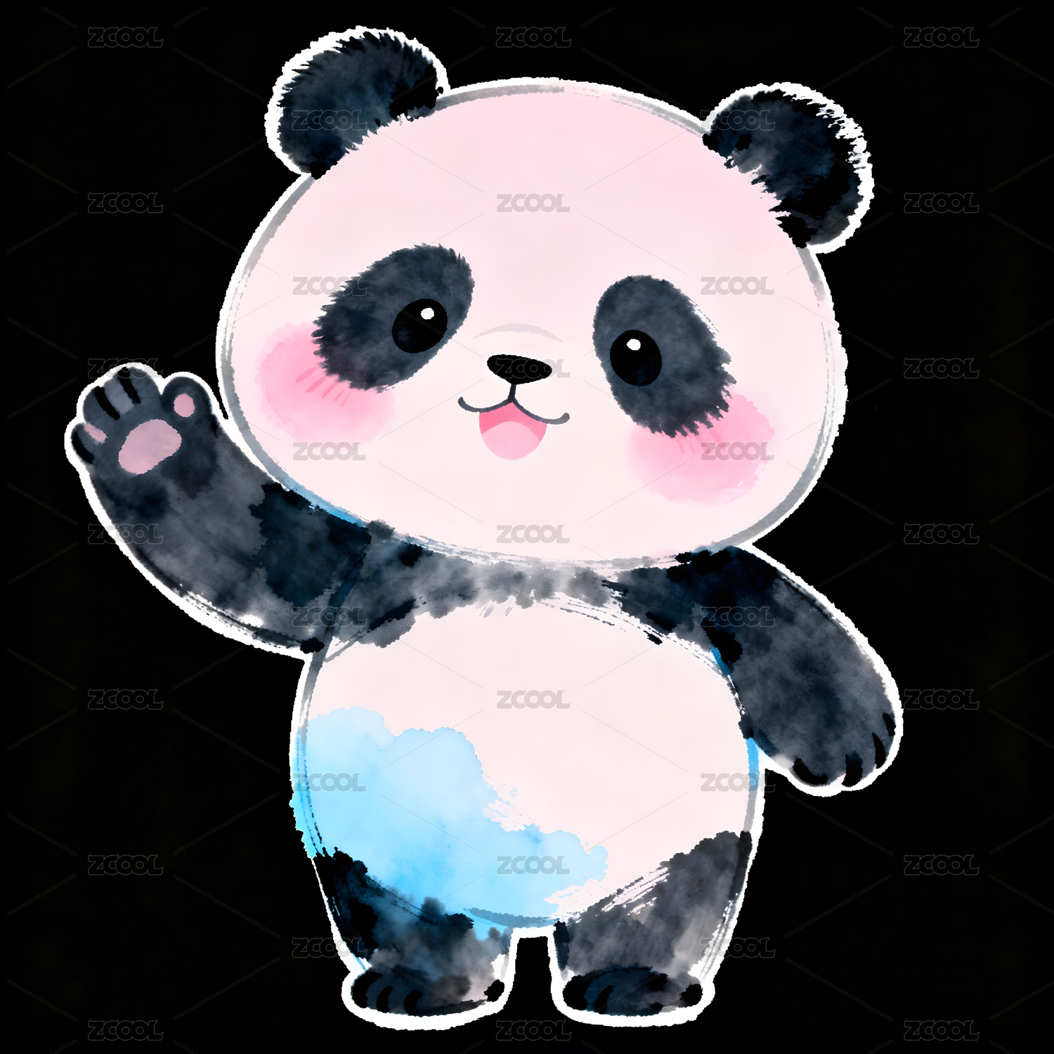 国宝,熊猫,风格,插画,动物,可爱,卡通,动画,形象,场景