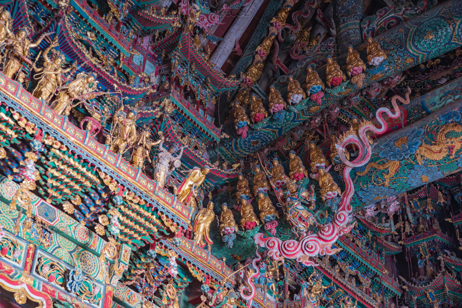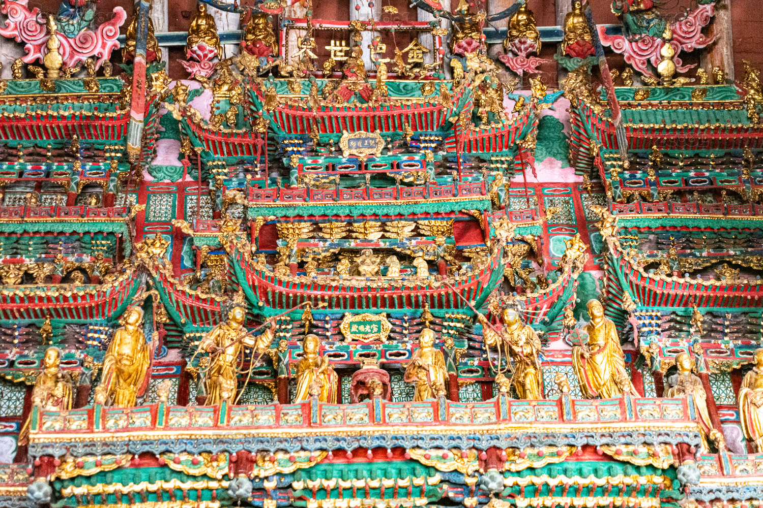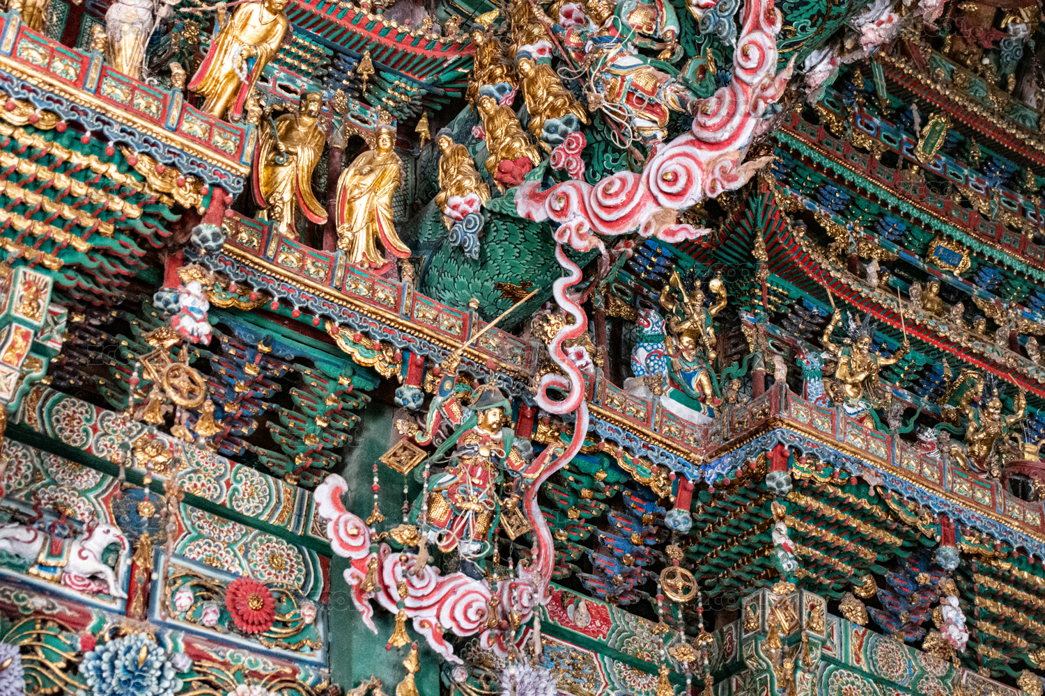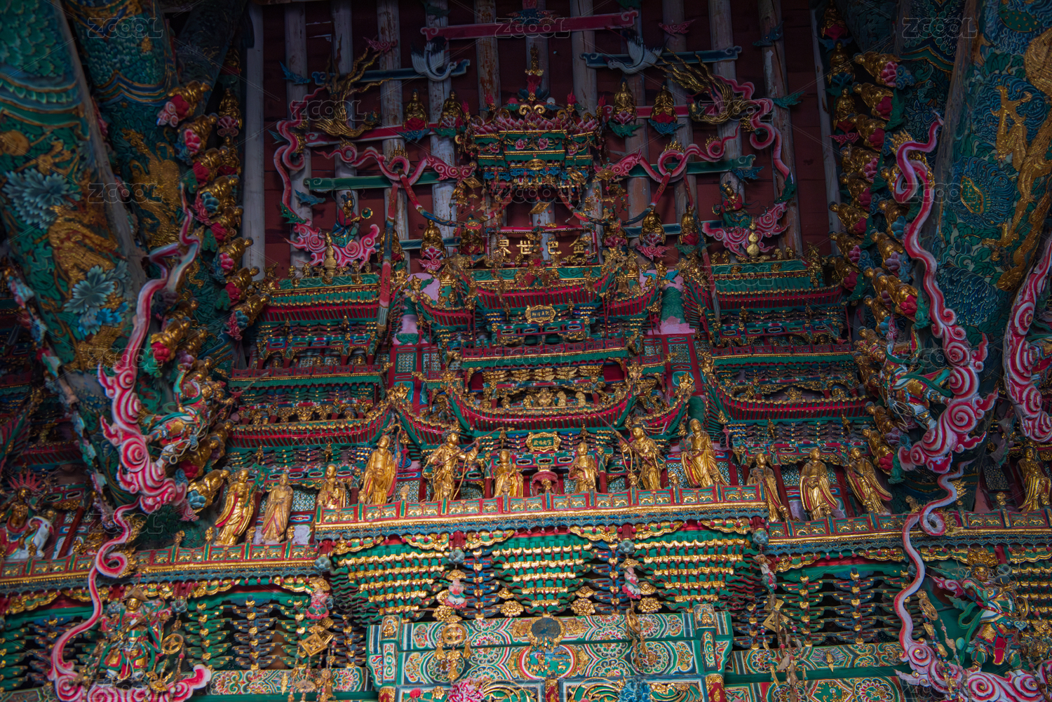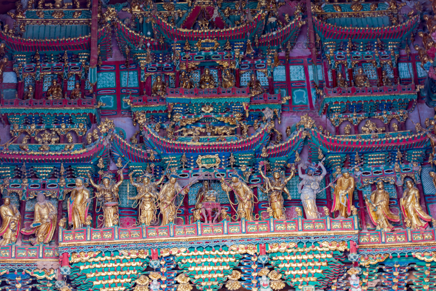 山西临汾隰县小西天内的明清贴金悬塑及彩绘