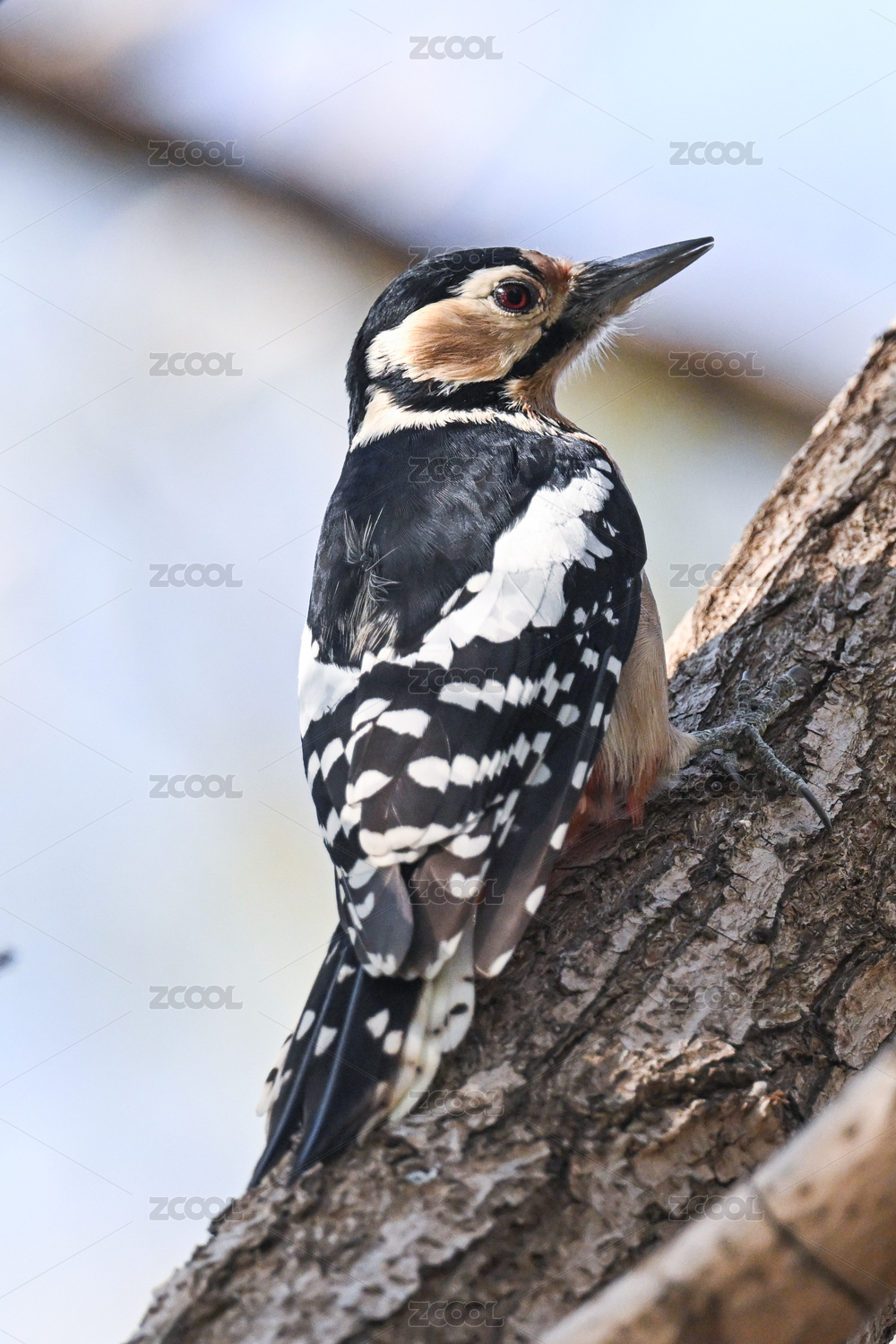 大斑啄木鸟,啄木鸟,一只大斑啄木鸟,啄木头,站在树枝上,一只,益鸟,鸟类,动物,野生动物