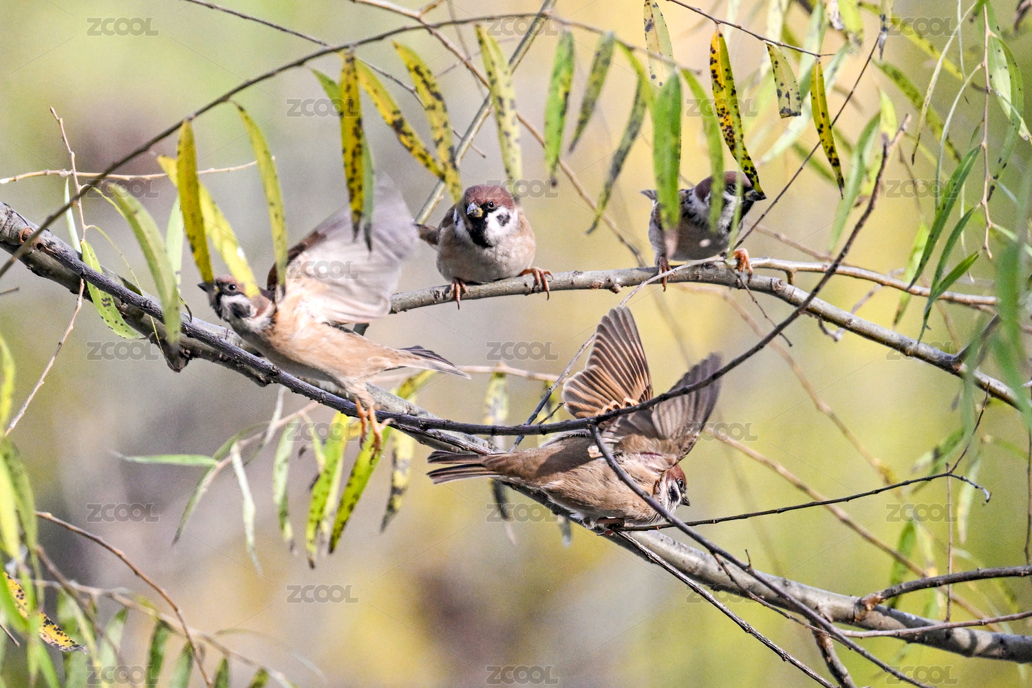 斑斓的光线下停驻在树枝上的一只的小鸟