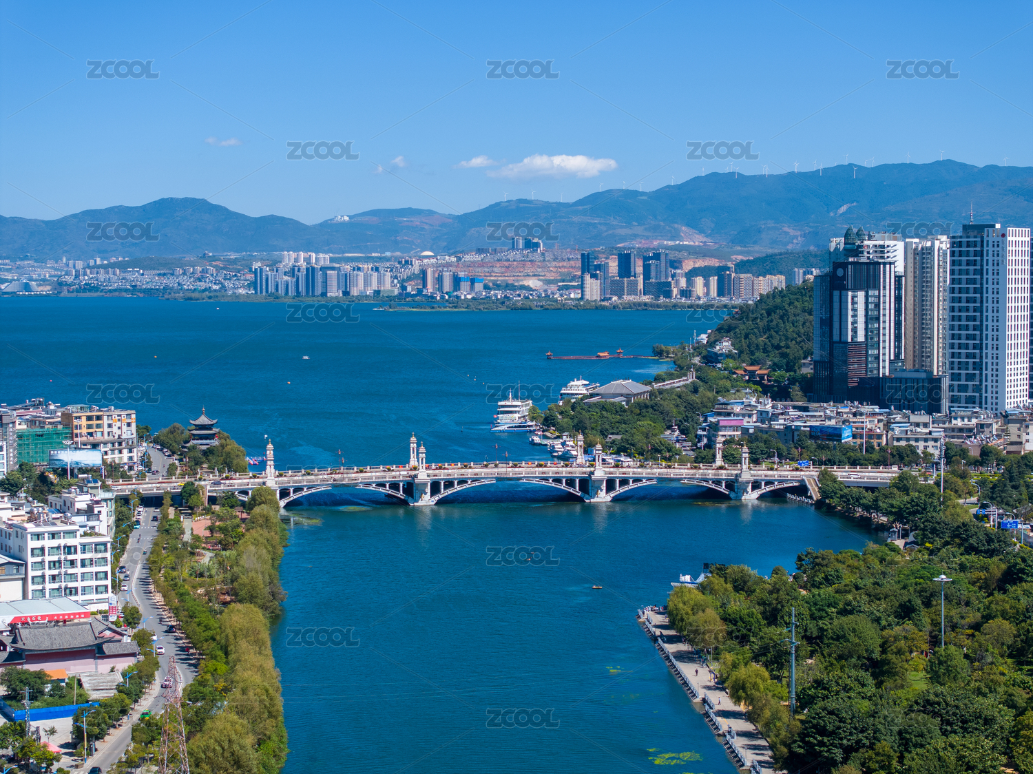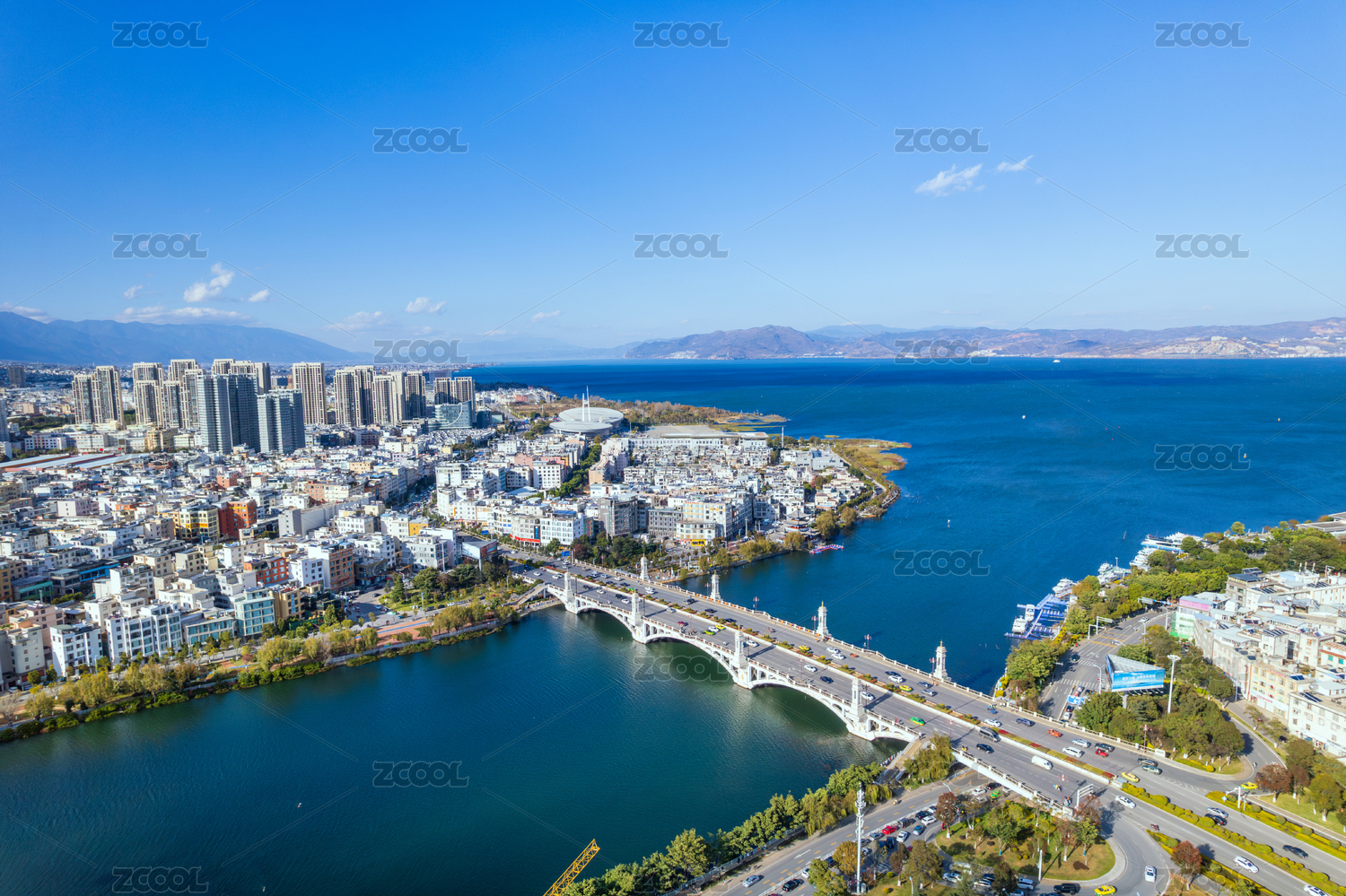 云南大理下关兴盛大桥冬季白昼晴天航拍视角