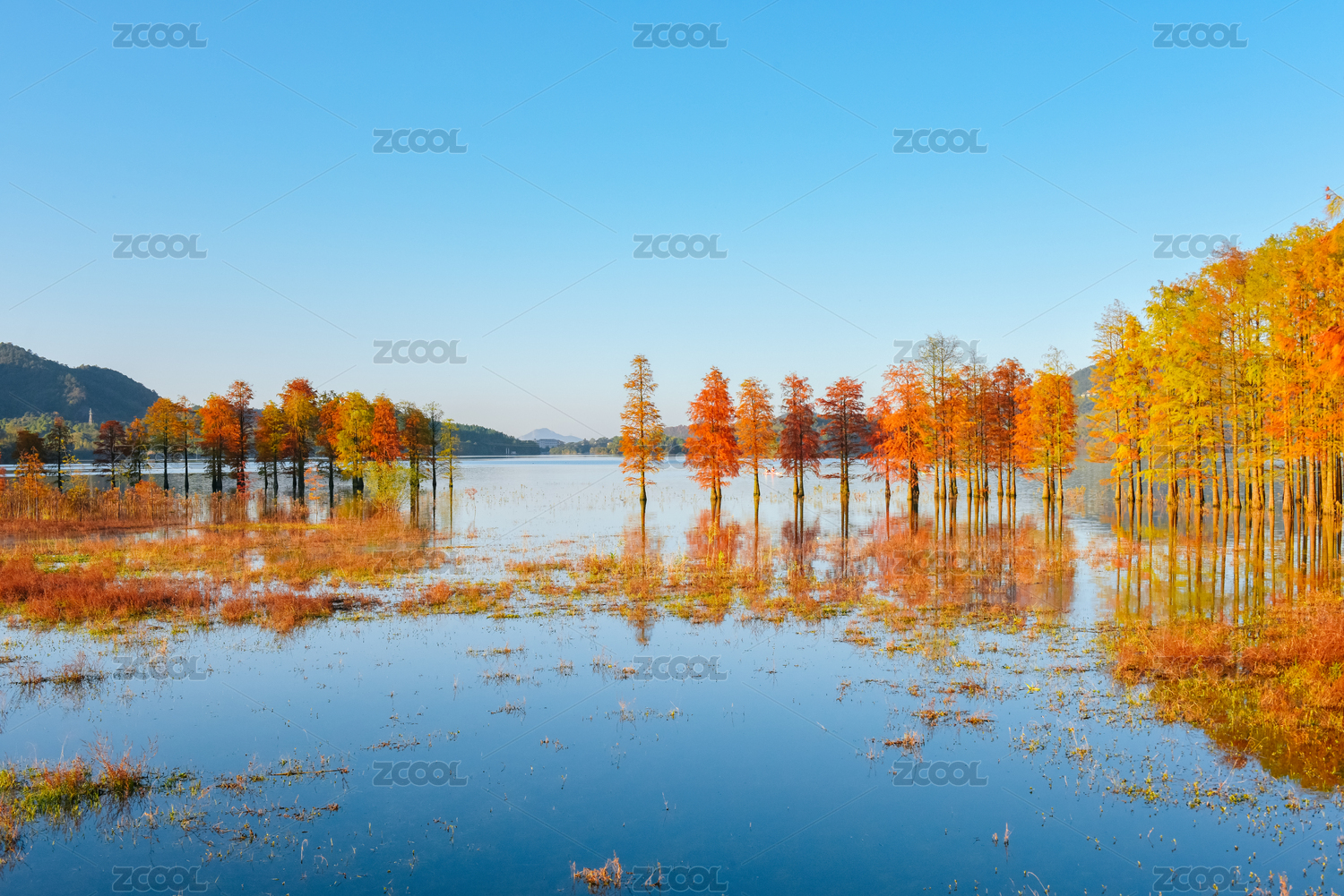 云南昆明三家村水库水杉林秋景