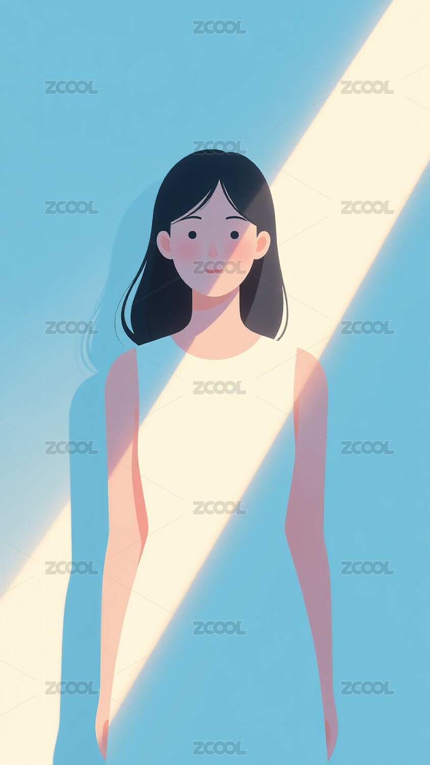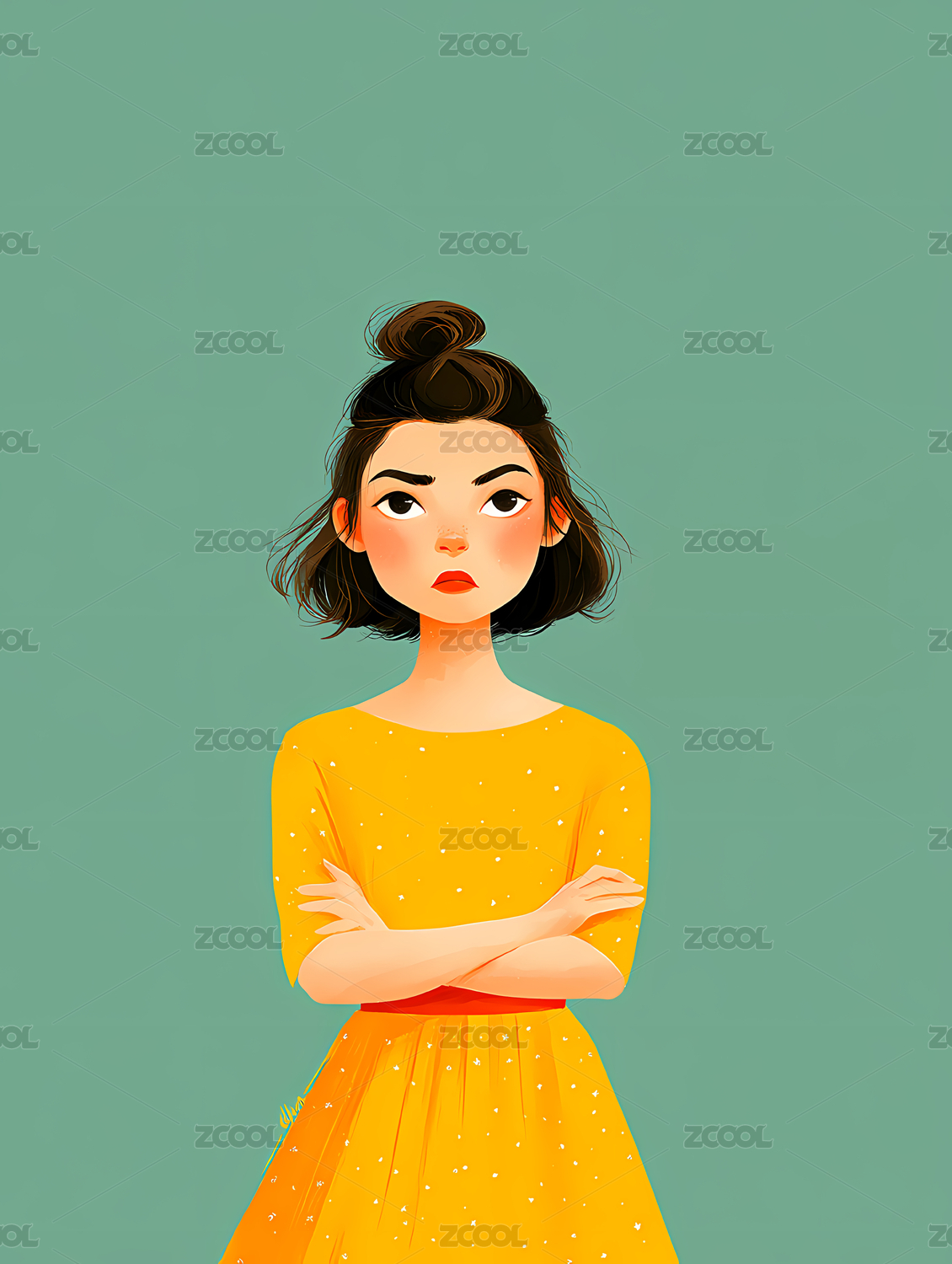 橙绿少女时尚肖像大头照矢量扁平化设计背景