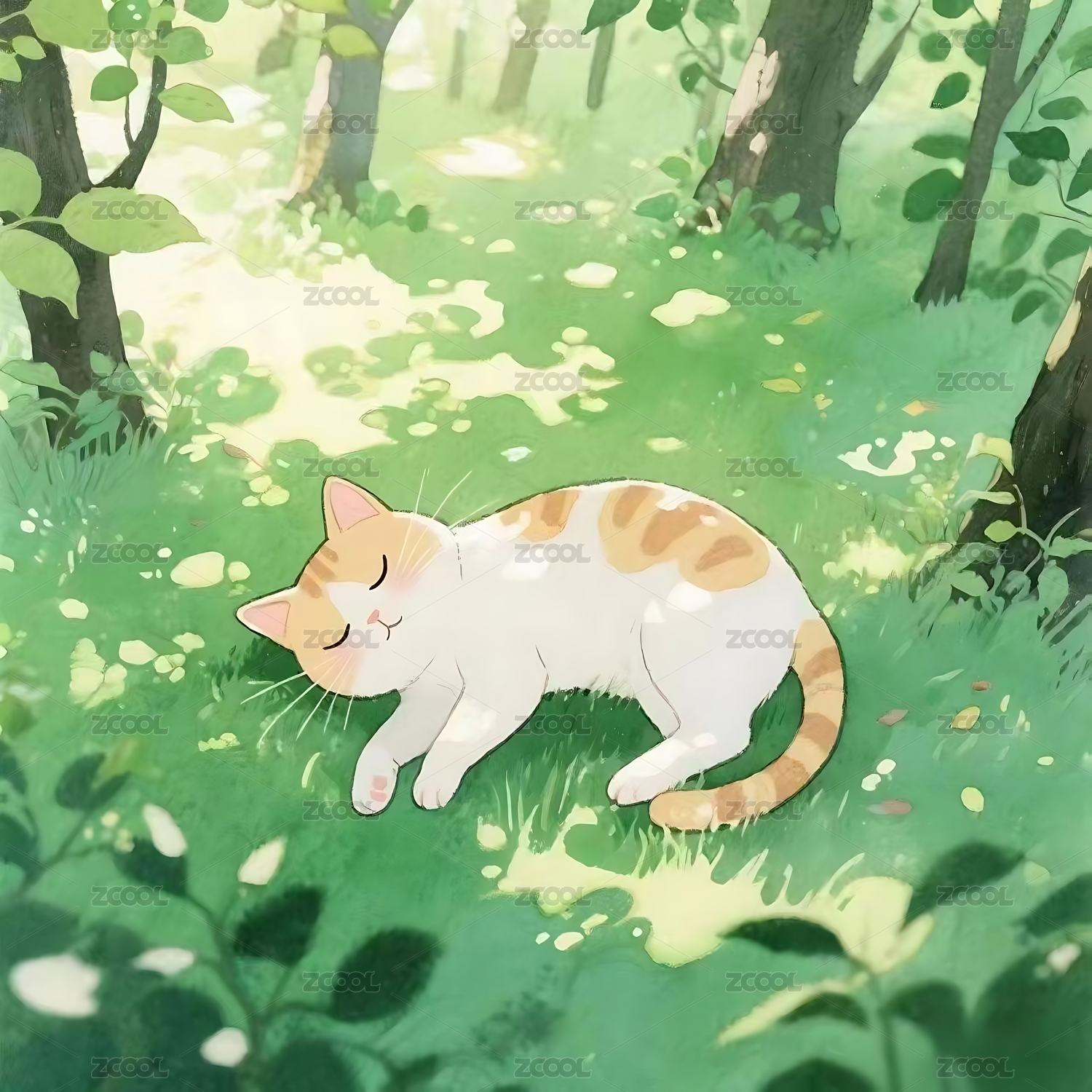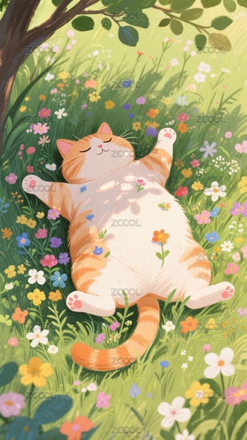 白色,自然,猫咪,睡觉,花朵,草地,阳光,影子,户外,春天