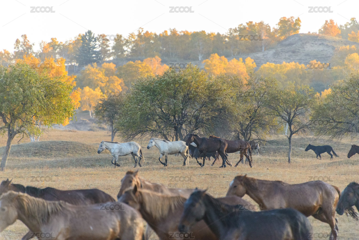 中国内蒙古乌兰布统将军泡子草原牧场秋色