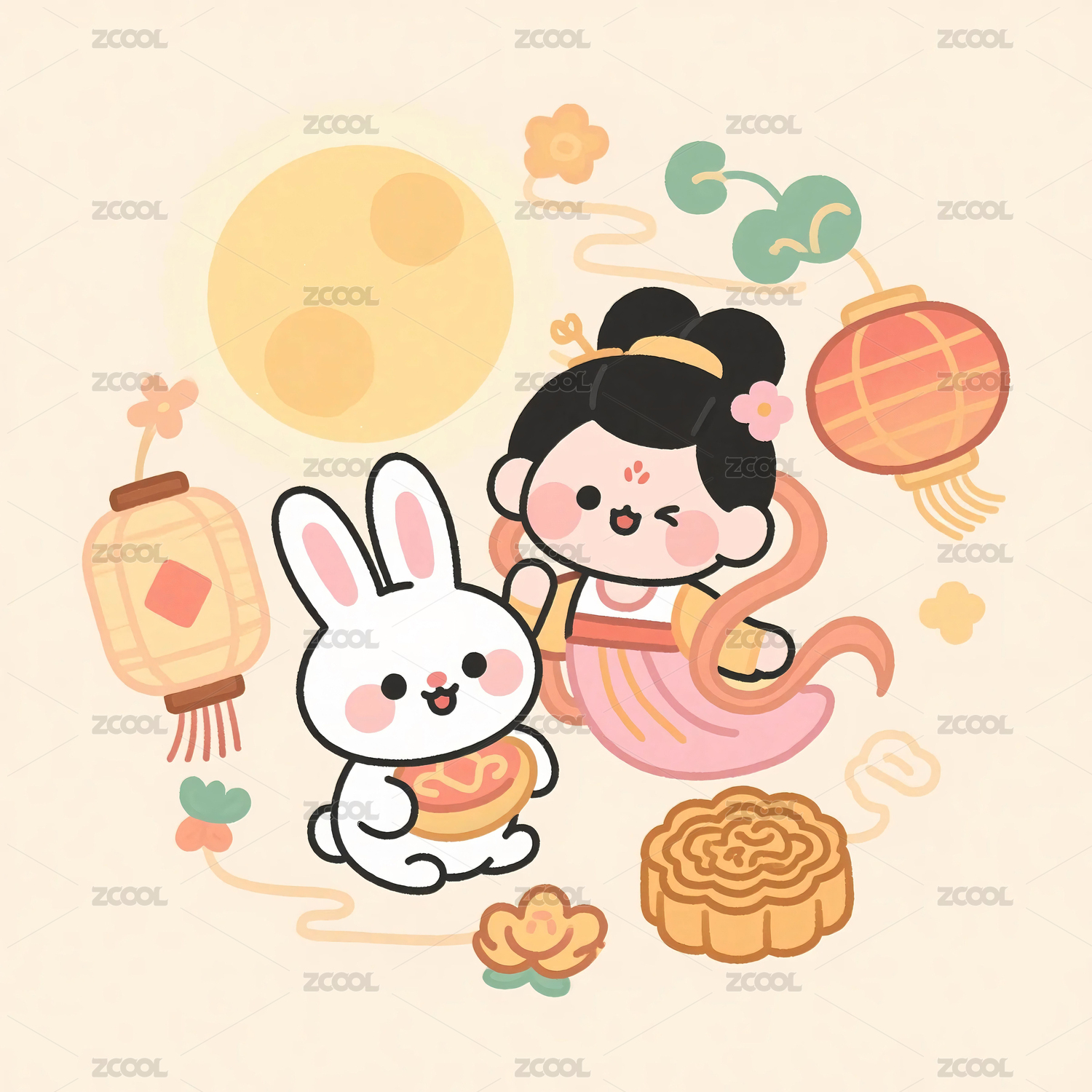 中秋主题的可爱风格插画