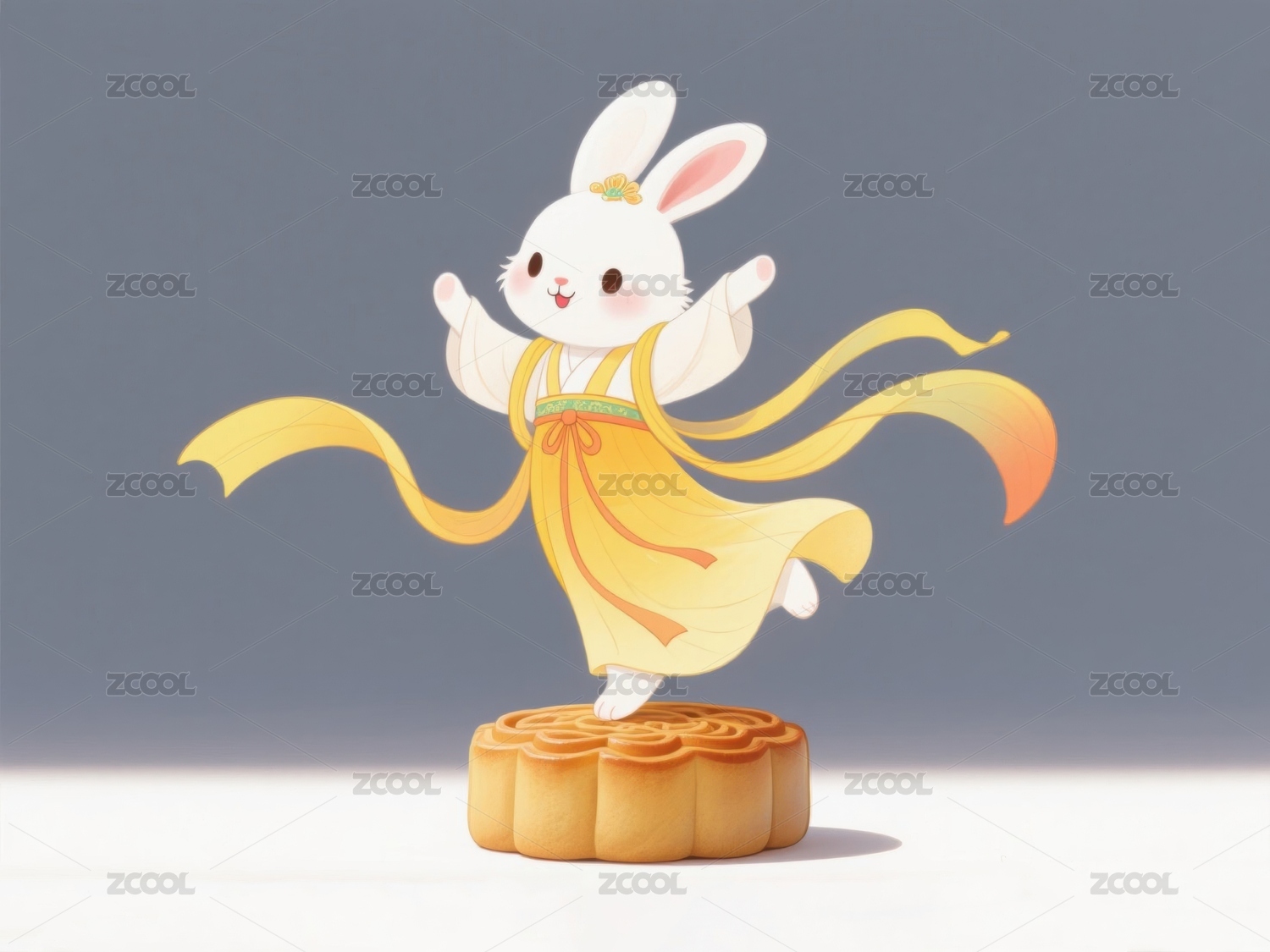 中秋节汉服玉兔小白兔月饼云朵三维图
