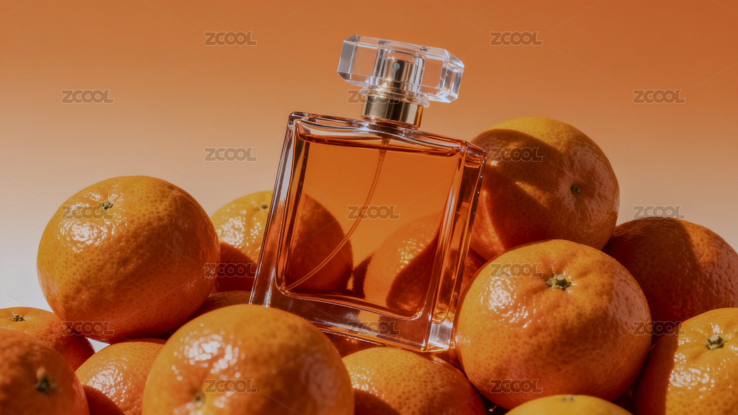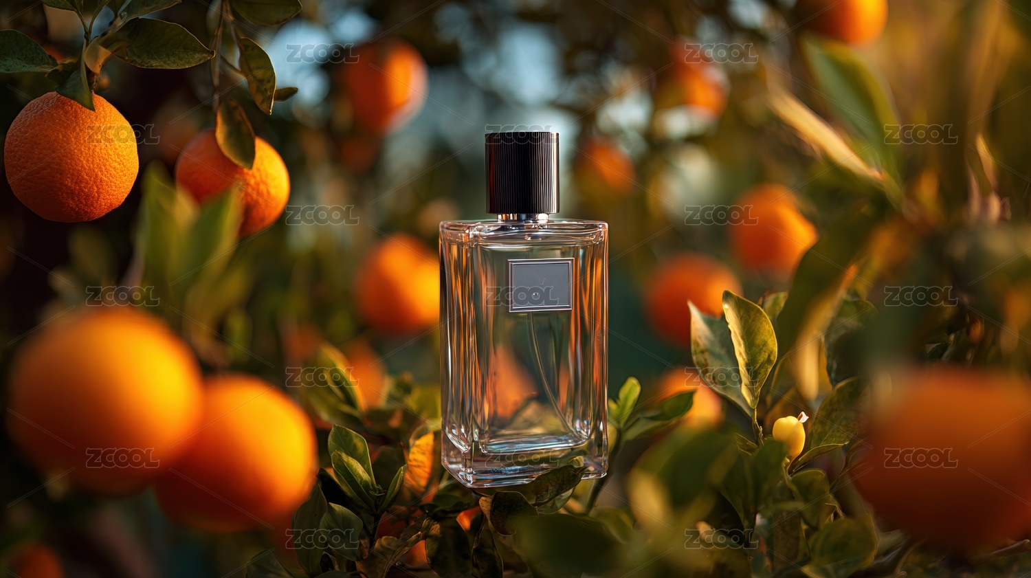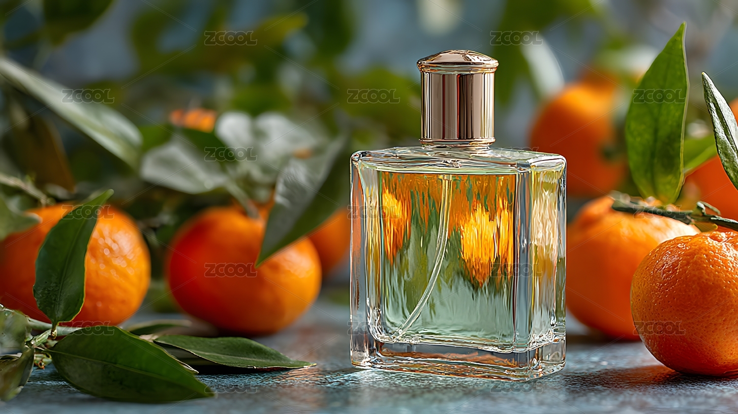 柑橘香水瓶与薄荷柑橘,清新香气氛围
