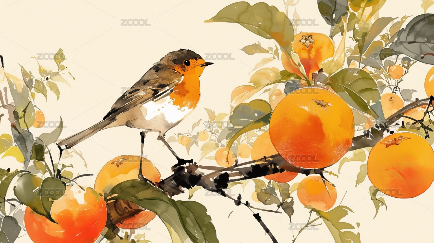 橙树上的小鸟