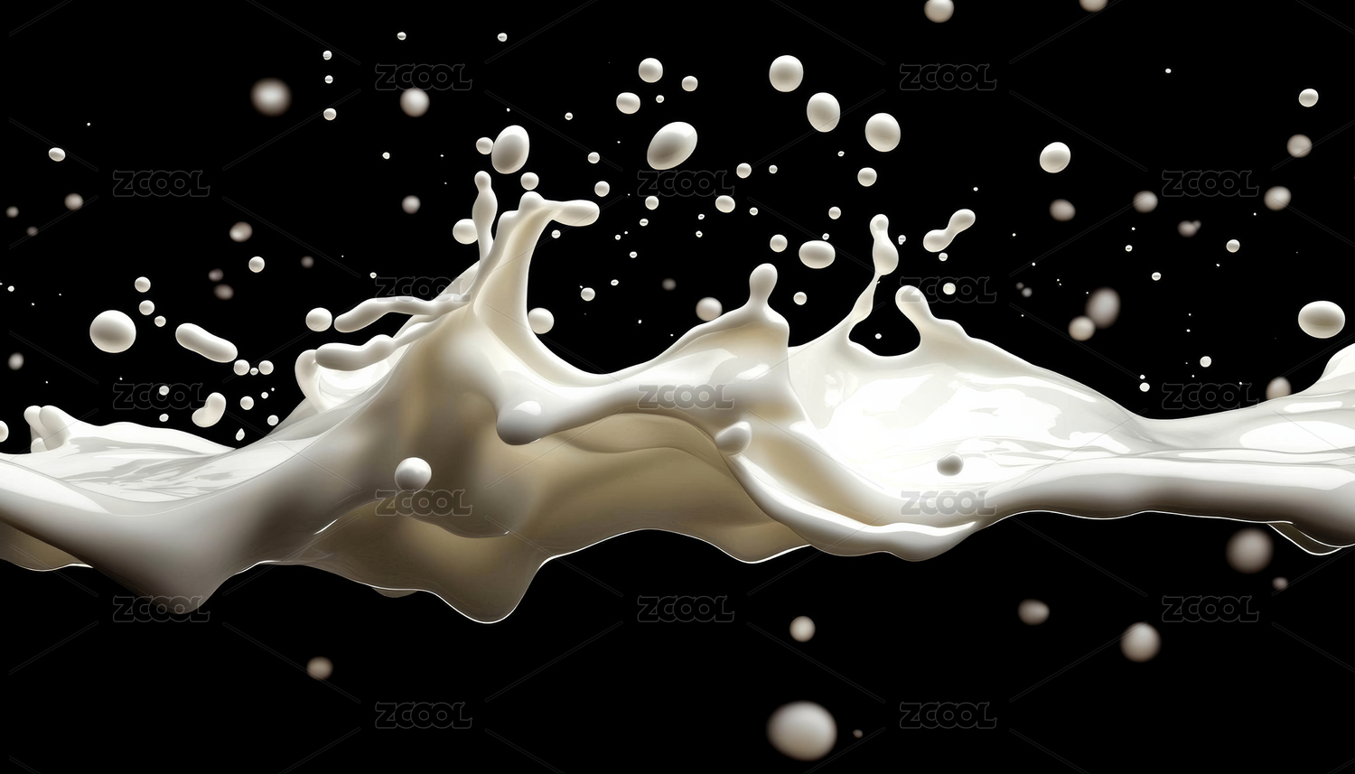 白色牛奶在灰色背景前飞溅 形成动态水花形