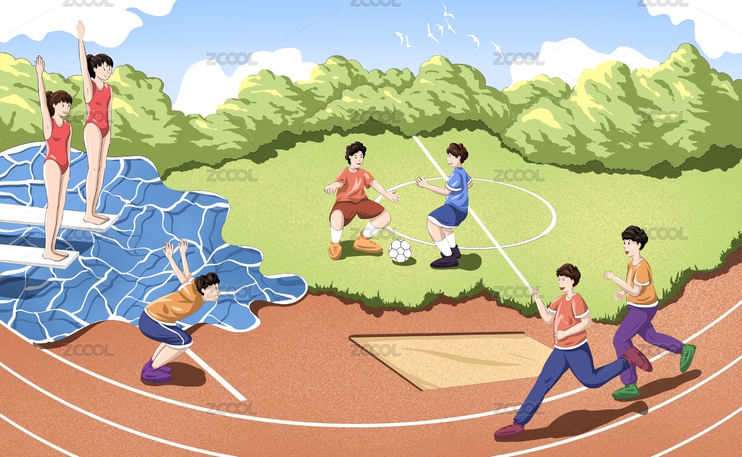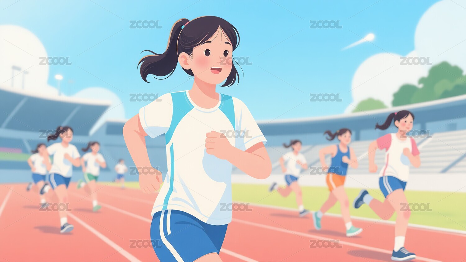 插画,韩式,清新,自然,学生,田径,冲刺,短跑,步伐,力量