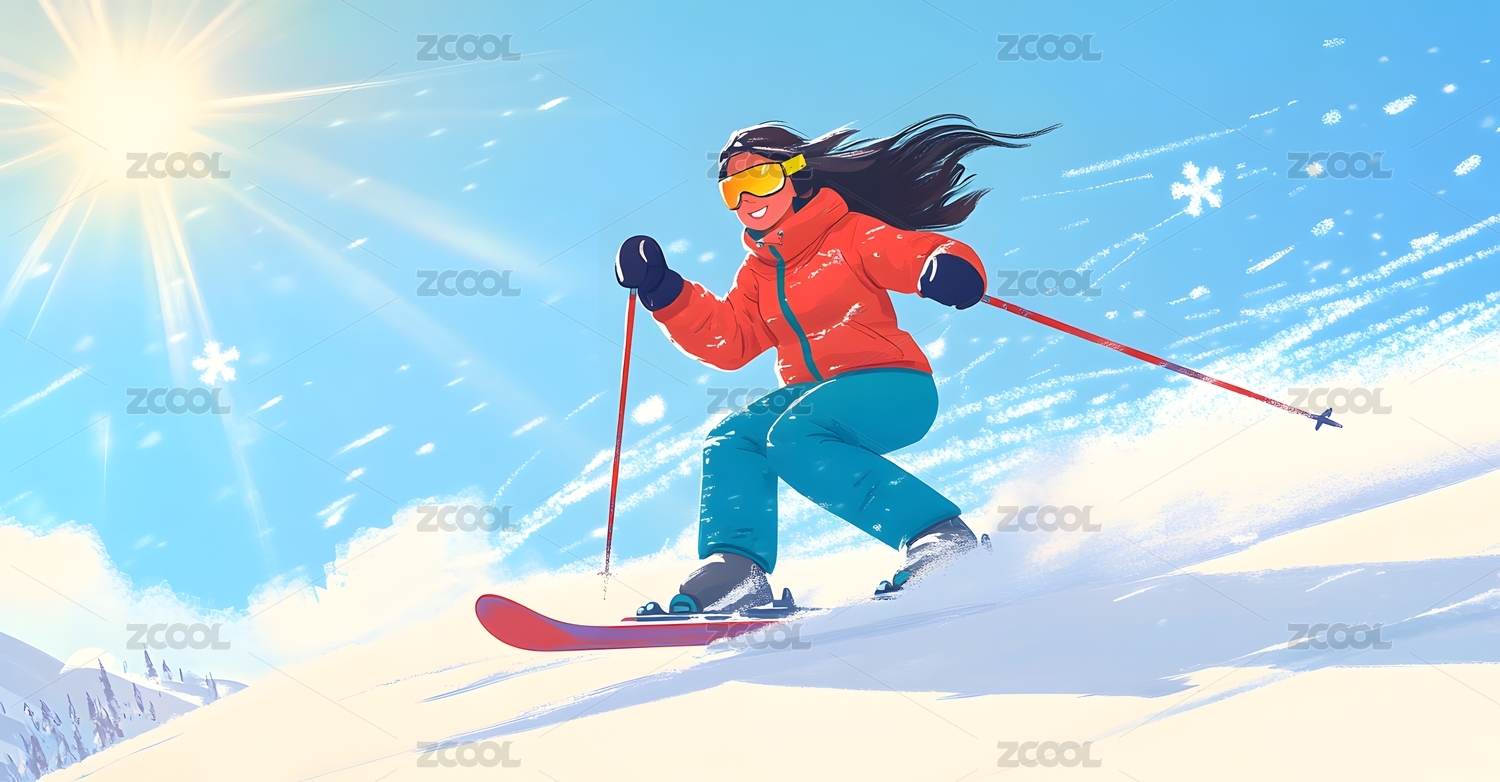 冬季,滑雪,场景,朋友,滑雪板,比赛,雪花,松林,天空,粉紫