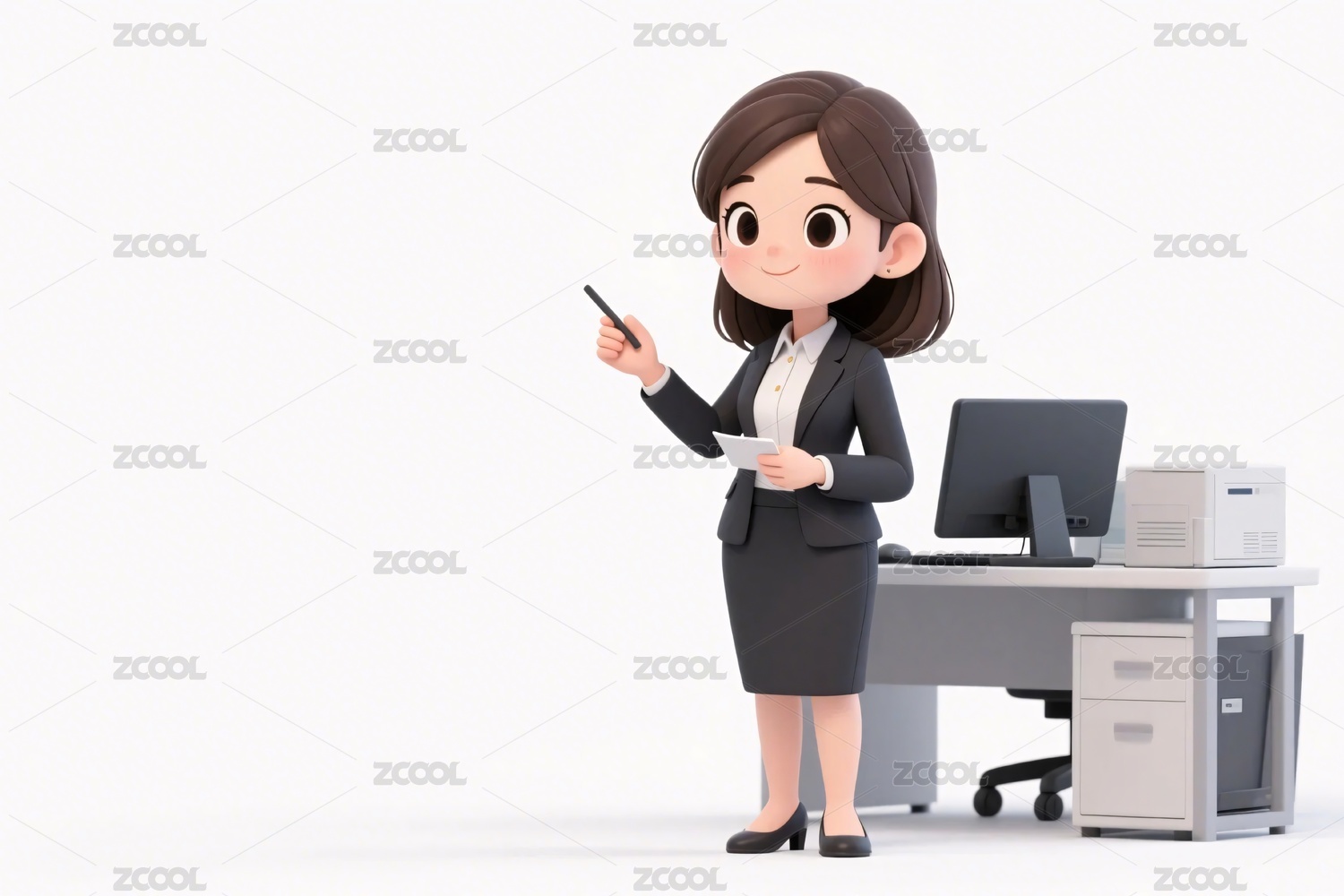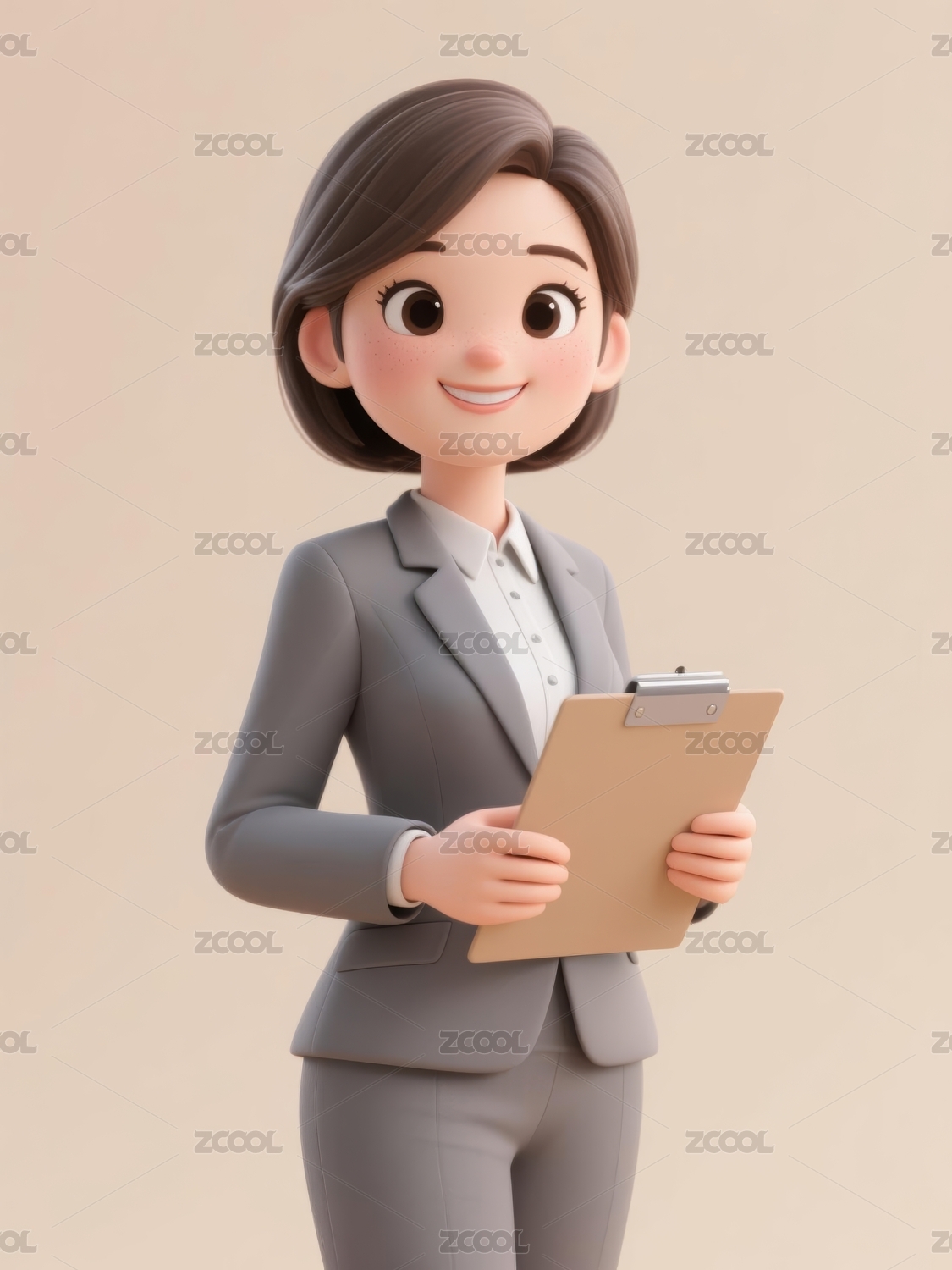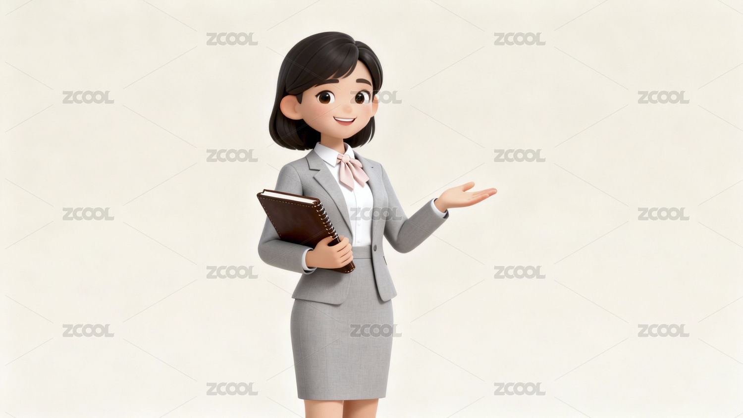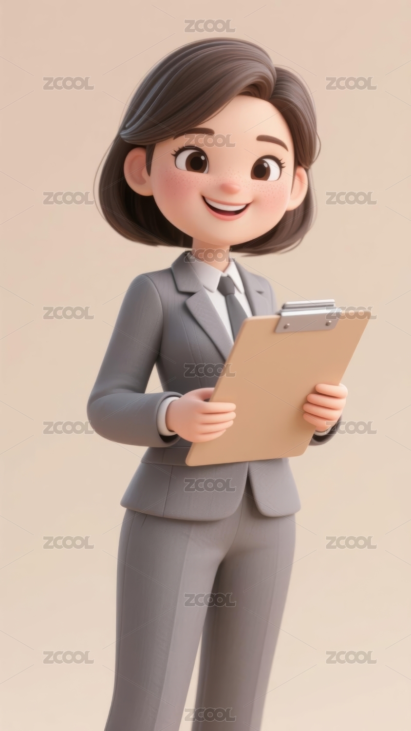 卡通,3D,人物,职业,裙装,灰色,文件夹,微笑,手势,托