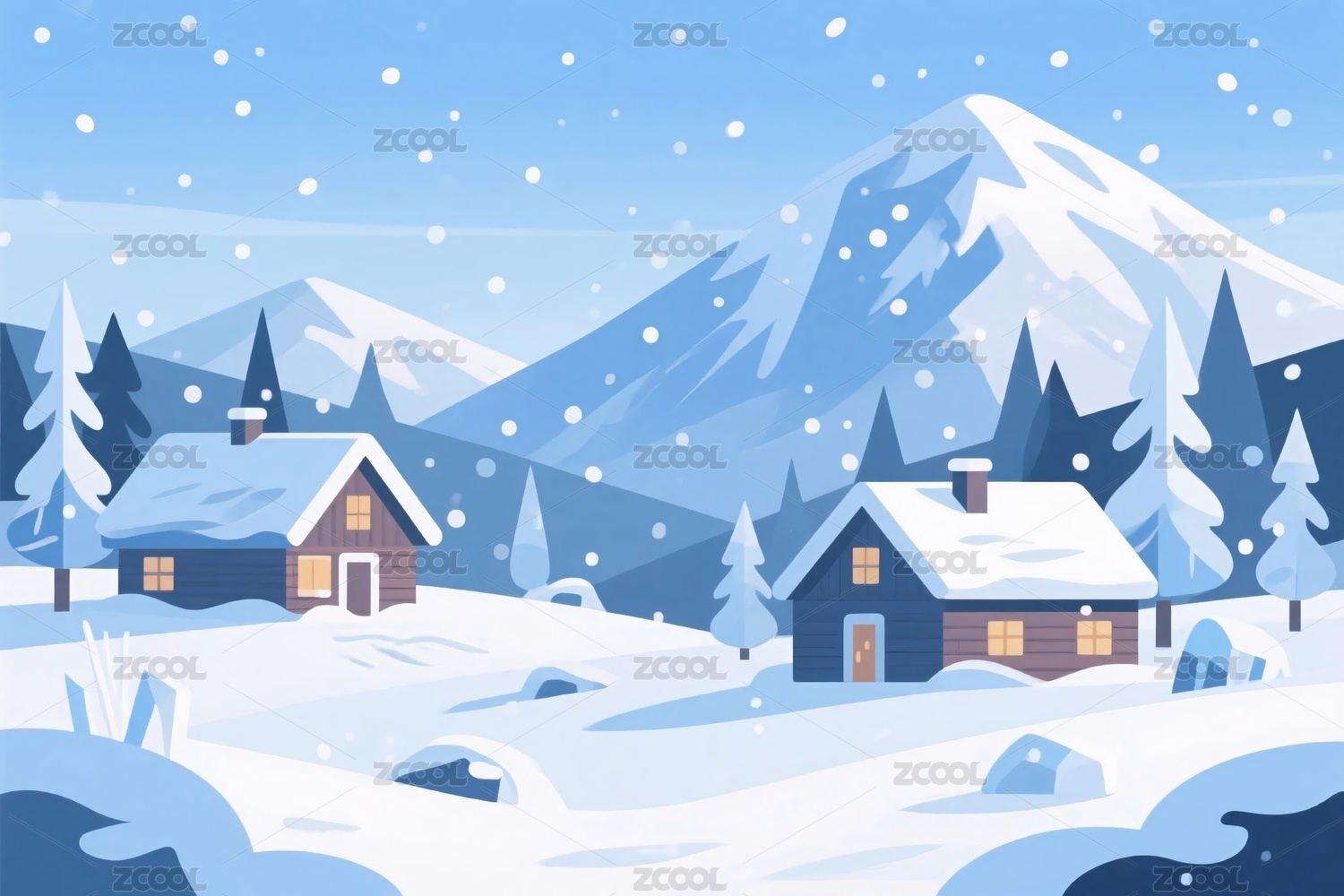 冬季,村庄,晨雾,雪,屋顶,田野,治愈,清新,明快,草地