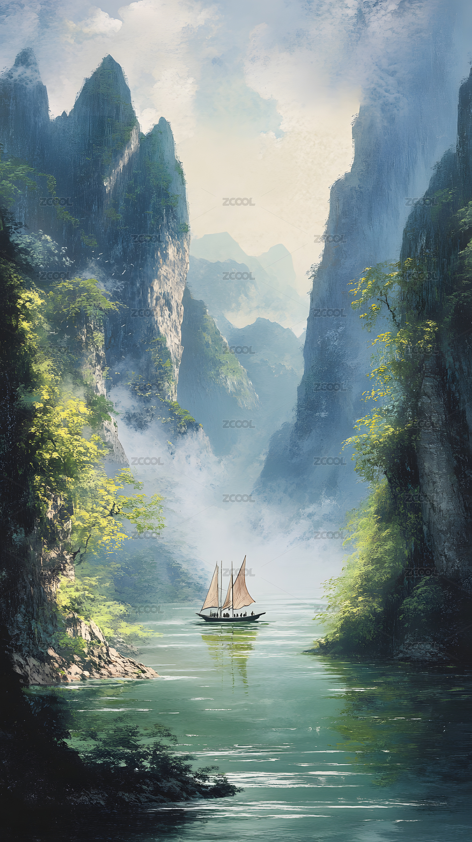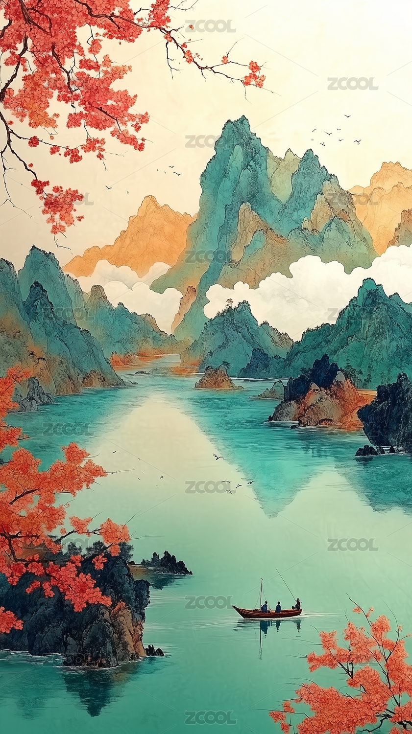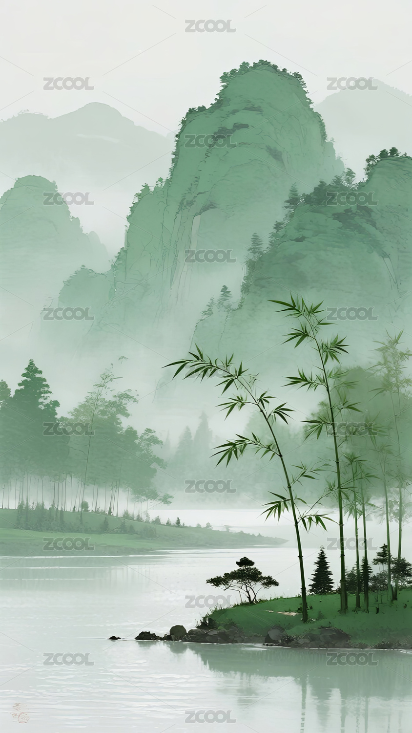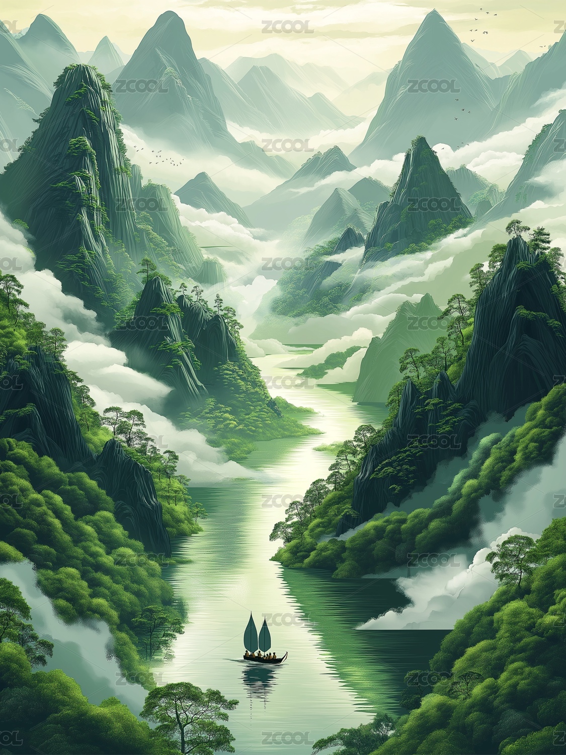 自然,和谐,美丽,风景,环境,生态,宁静,山峰,水面,绿色