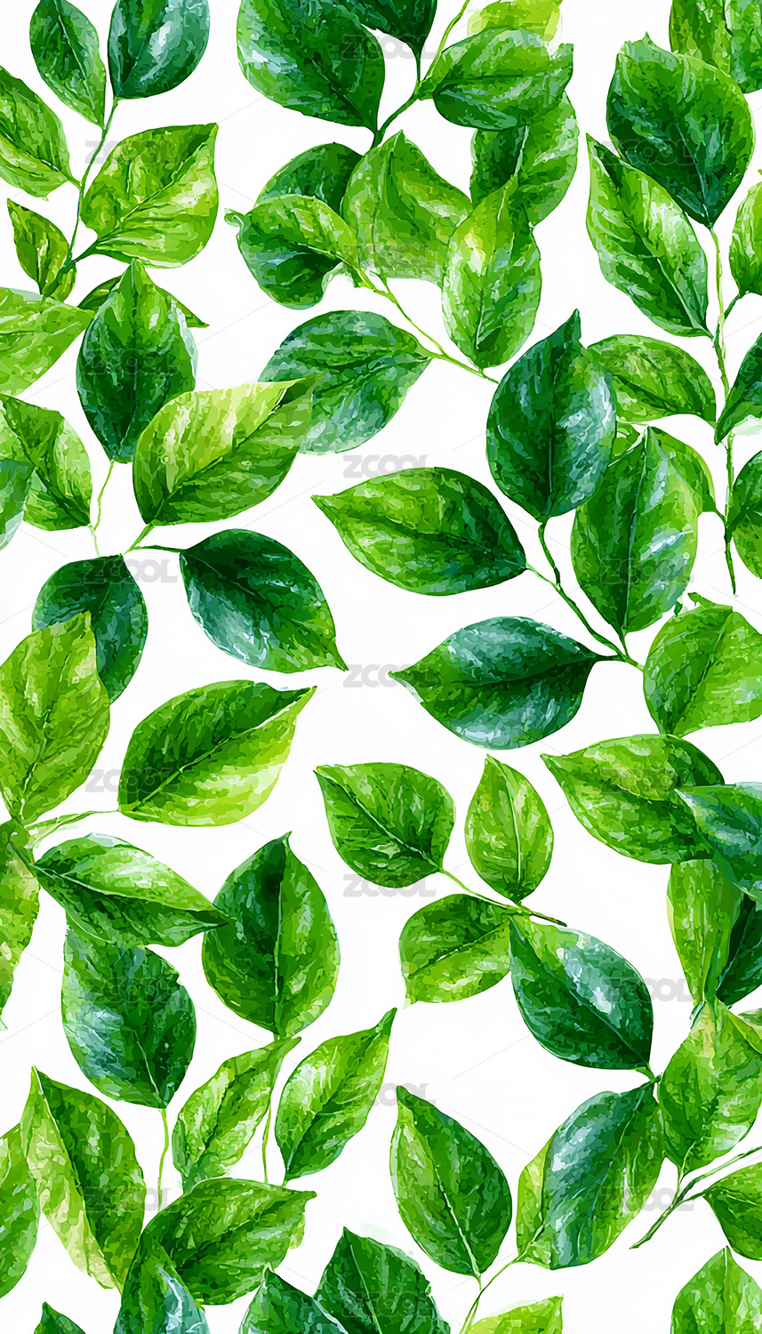 绿叶,水彩画,叶纹,绿色系,白色,背景,清新,风格,自然,元素