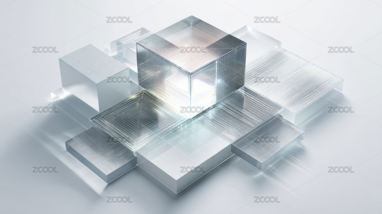 3D图形,透明,方块,蓝色,立方体,立体,造型,几何,结构,科技感