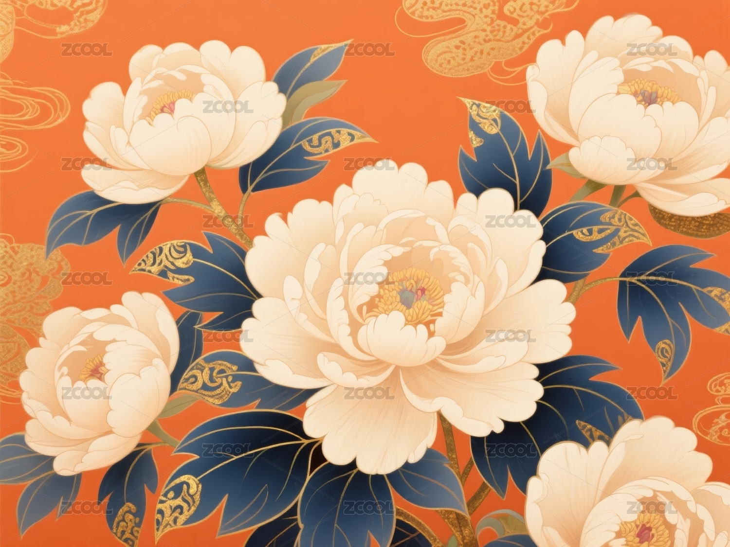 背景,植物,红色,牡丹,花朵,花瓣,花蕊,叶子,叶脉,金色