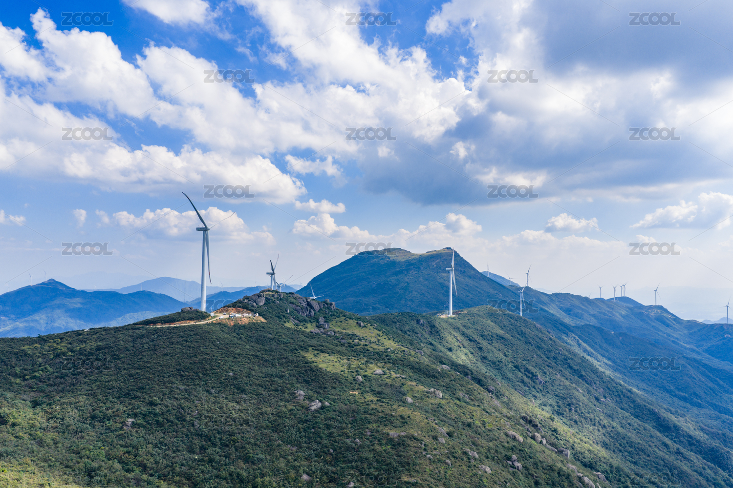 山上的风力发电 风车风能 新能源