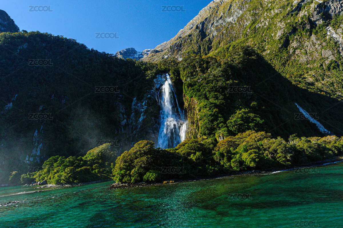 新西兰,南岛,米尔福德峡湾,秋天,秋季,清晨,峡湾风光,蓝天,自然景观,山水