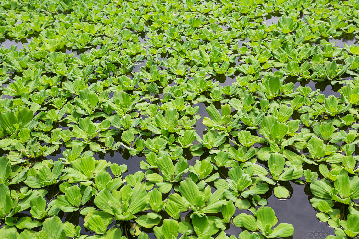 池塘里生长的水生飘浮草本大薸