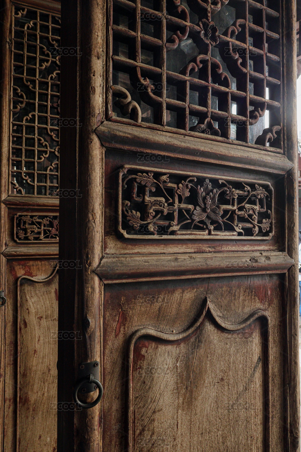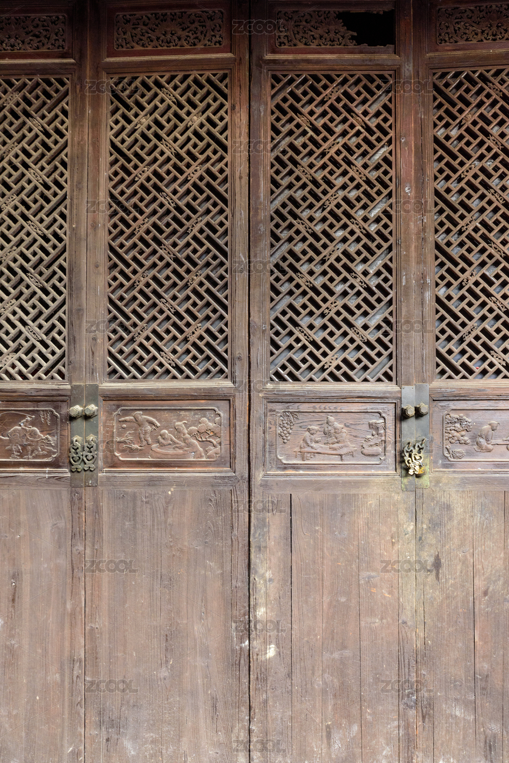 中国安徽省黟县卢村木雕楼中式镂空雕花门窗