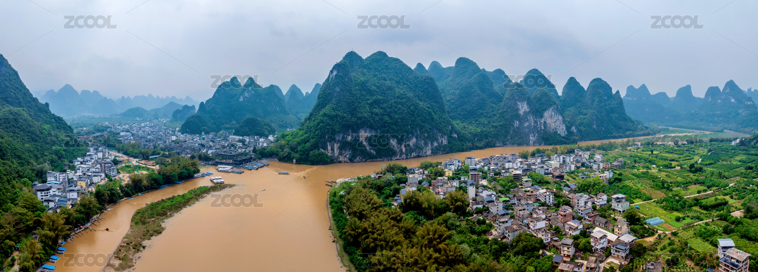 桂林阳朔兴坪古镇漓江沿岸自然风光山水航拍