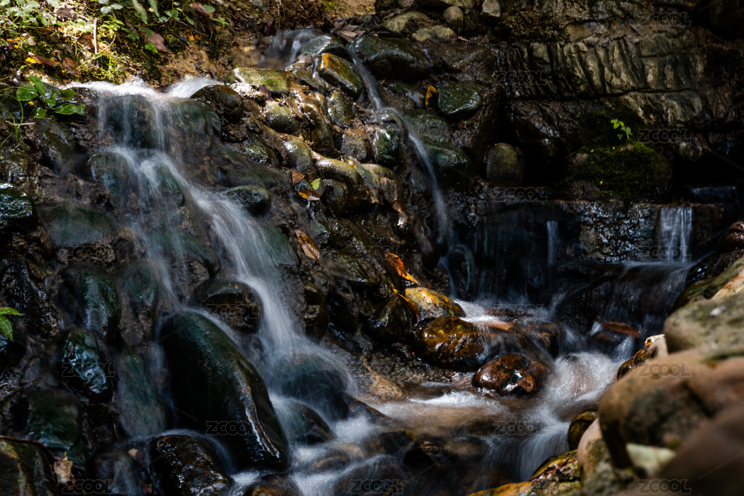 夏天户外一条冰凉清澈的溪水