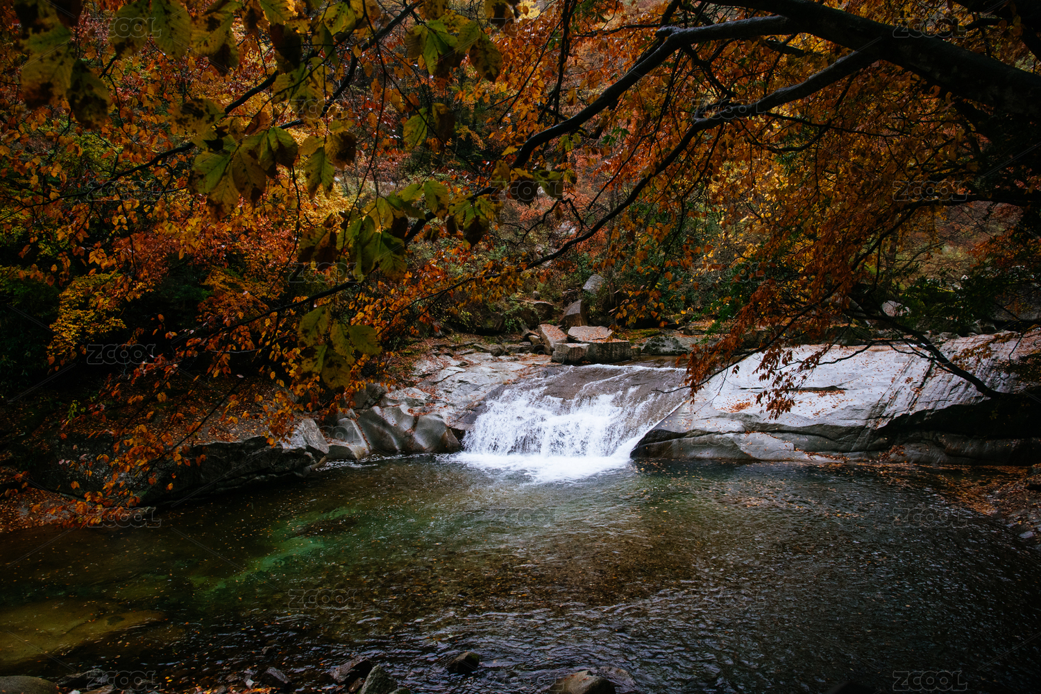 秋天湖水瀑布风景