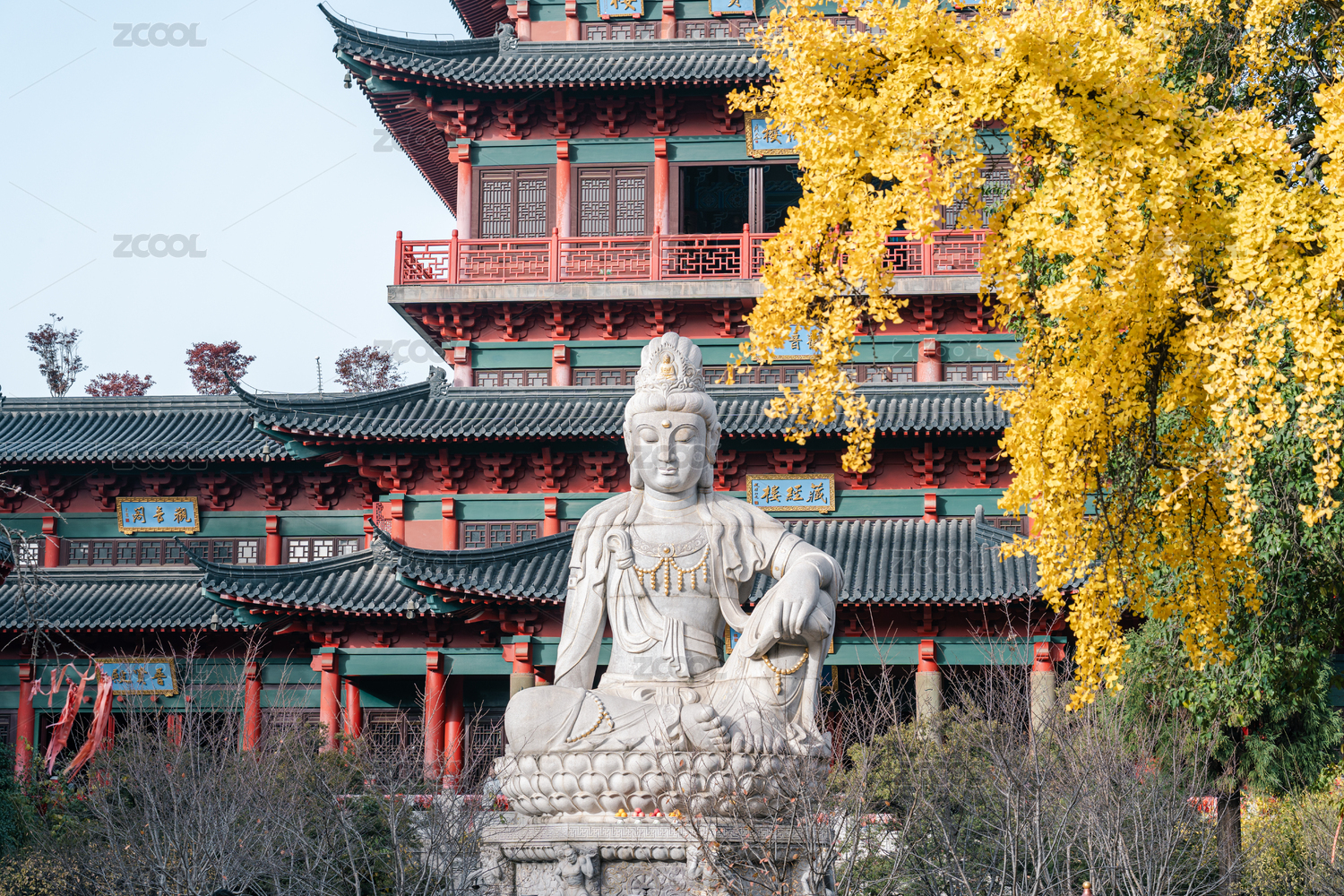 江苏,南京,银杏,秋天,深秋,佛,佛教,毗卢寺,户外,风景