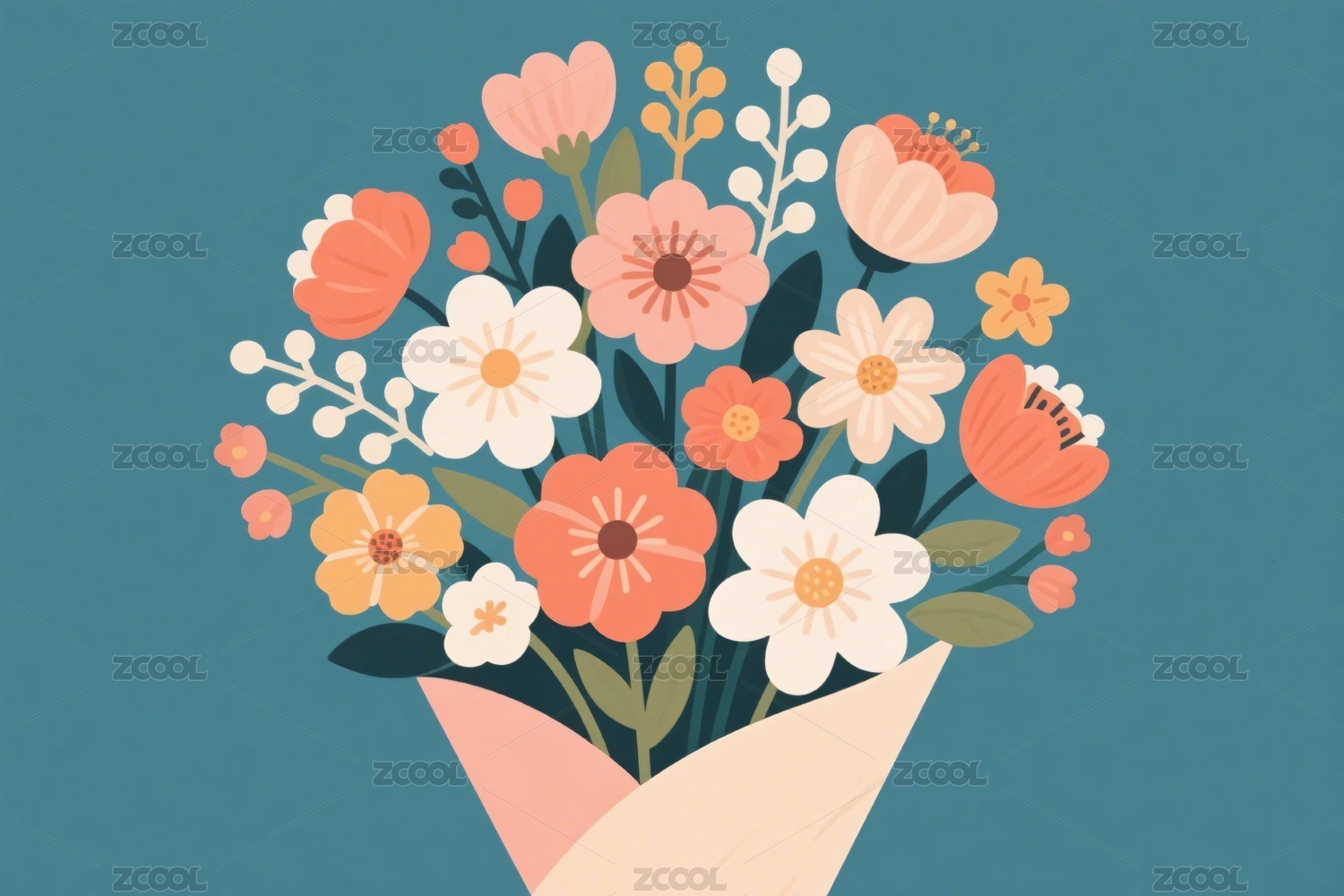 插画风格鲜花束