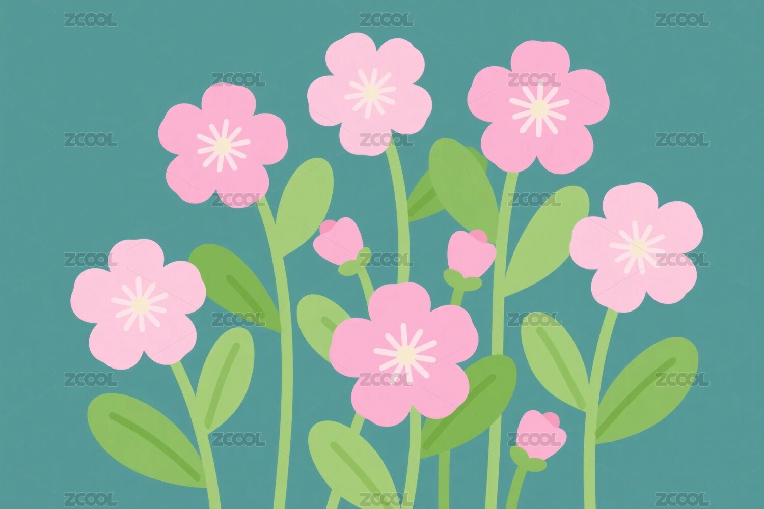 清新插画粉色花朵图案
