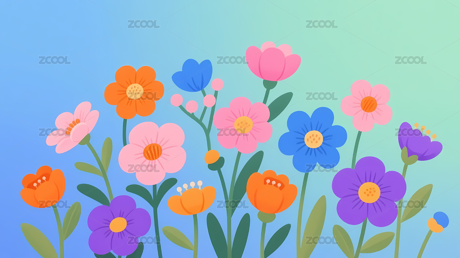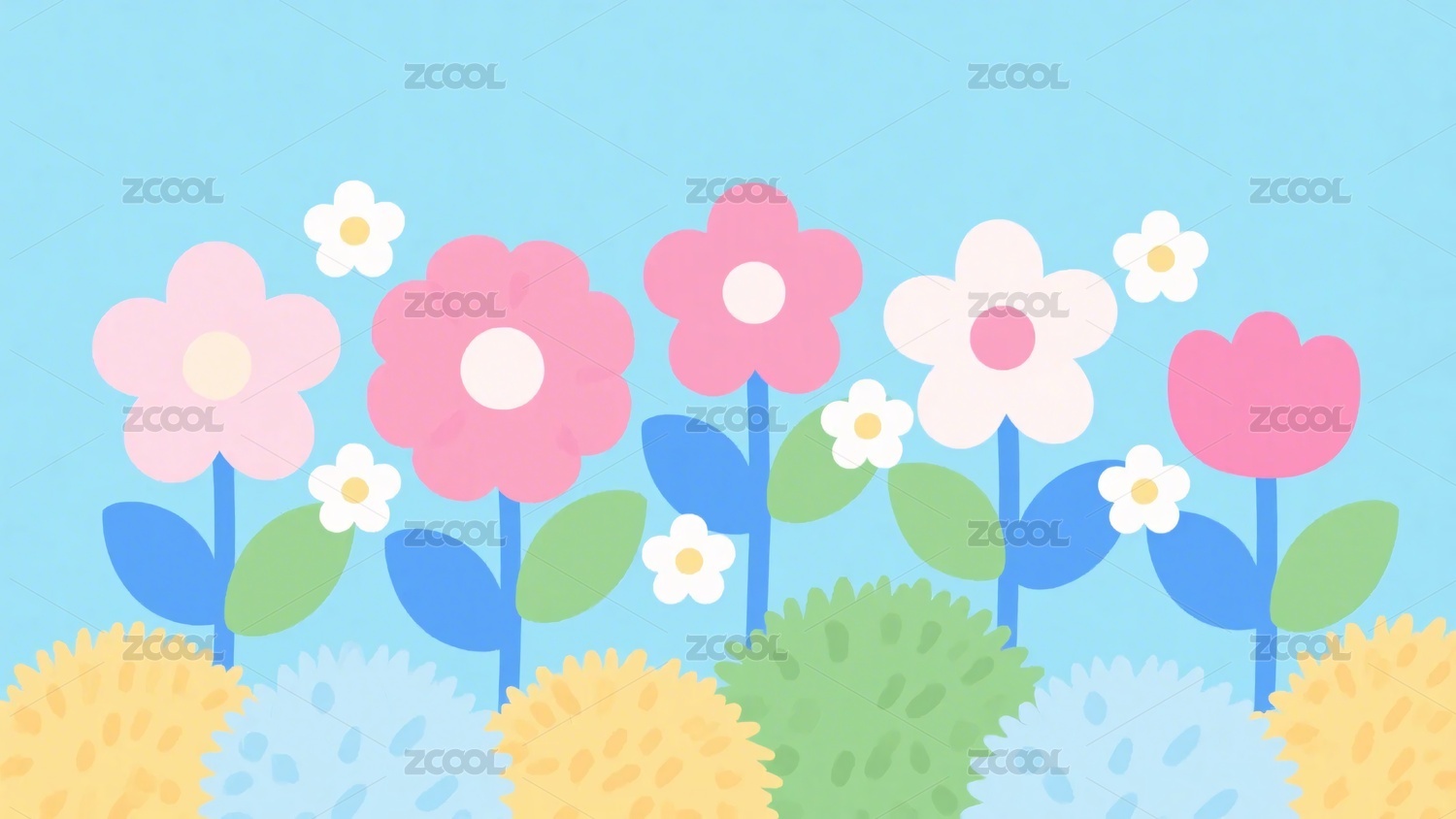 多彩花朵浅蓝背景