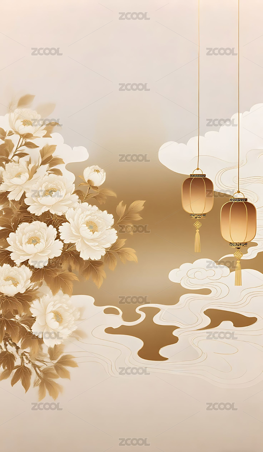 背景,传统,国风,古风,新中式,牡丹花,灯笼,扁平风格