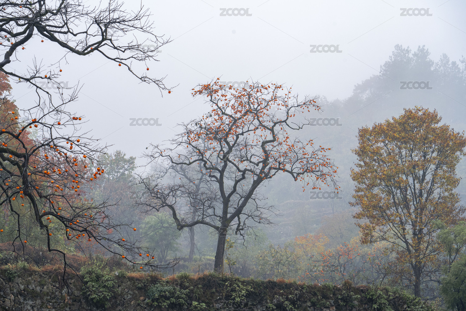 中国武汉罗田錾字石村甜柿第一村柿子树景观