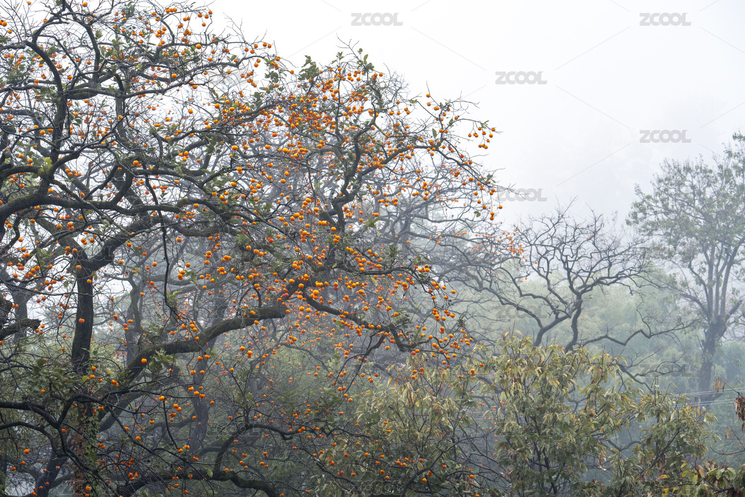 中国武汉罗田錾字石村甜柿第一村柿子树景观