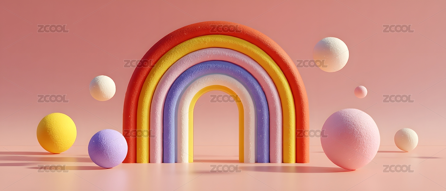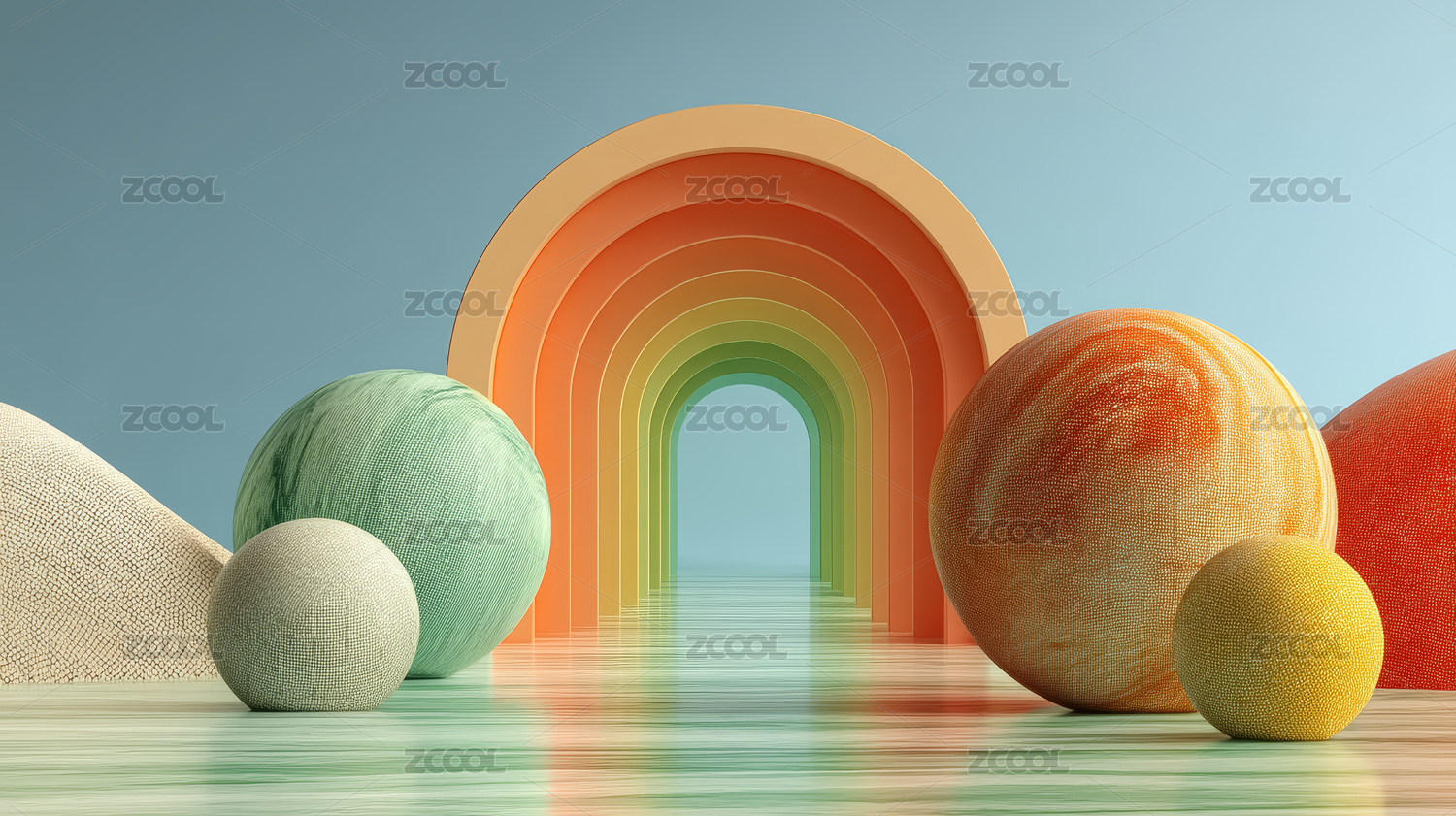 3D,背景,卡通,抽象,场景,空间,拱门,艺术,可爱