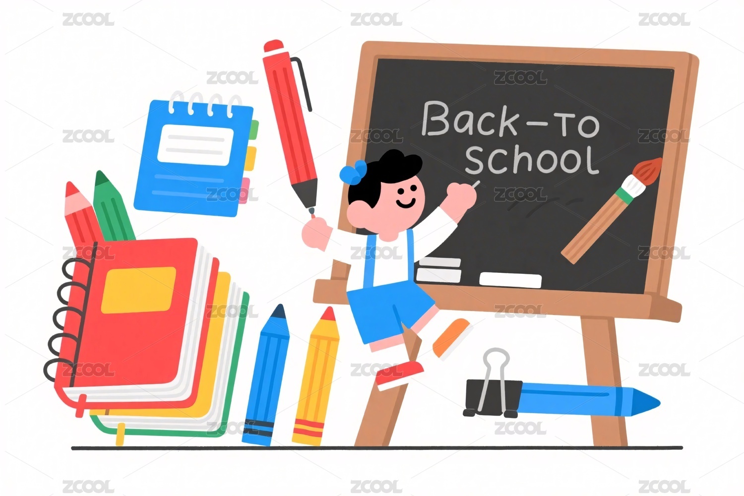 卡通手绘教育用具黑板书包插画