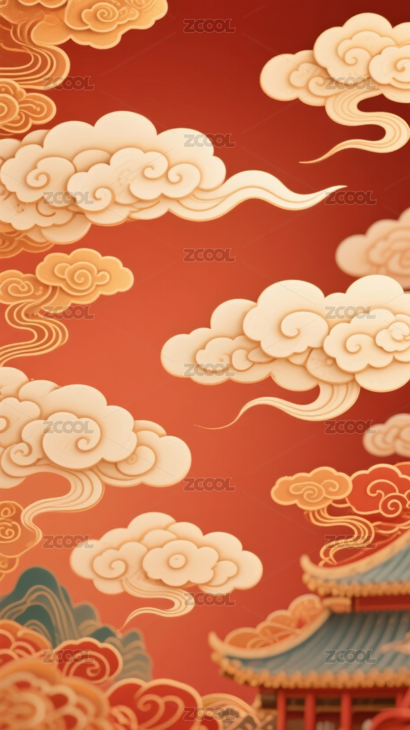 金红中式亭台楼阁背景