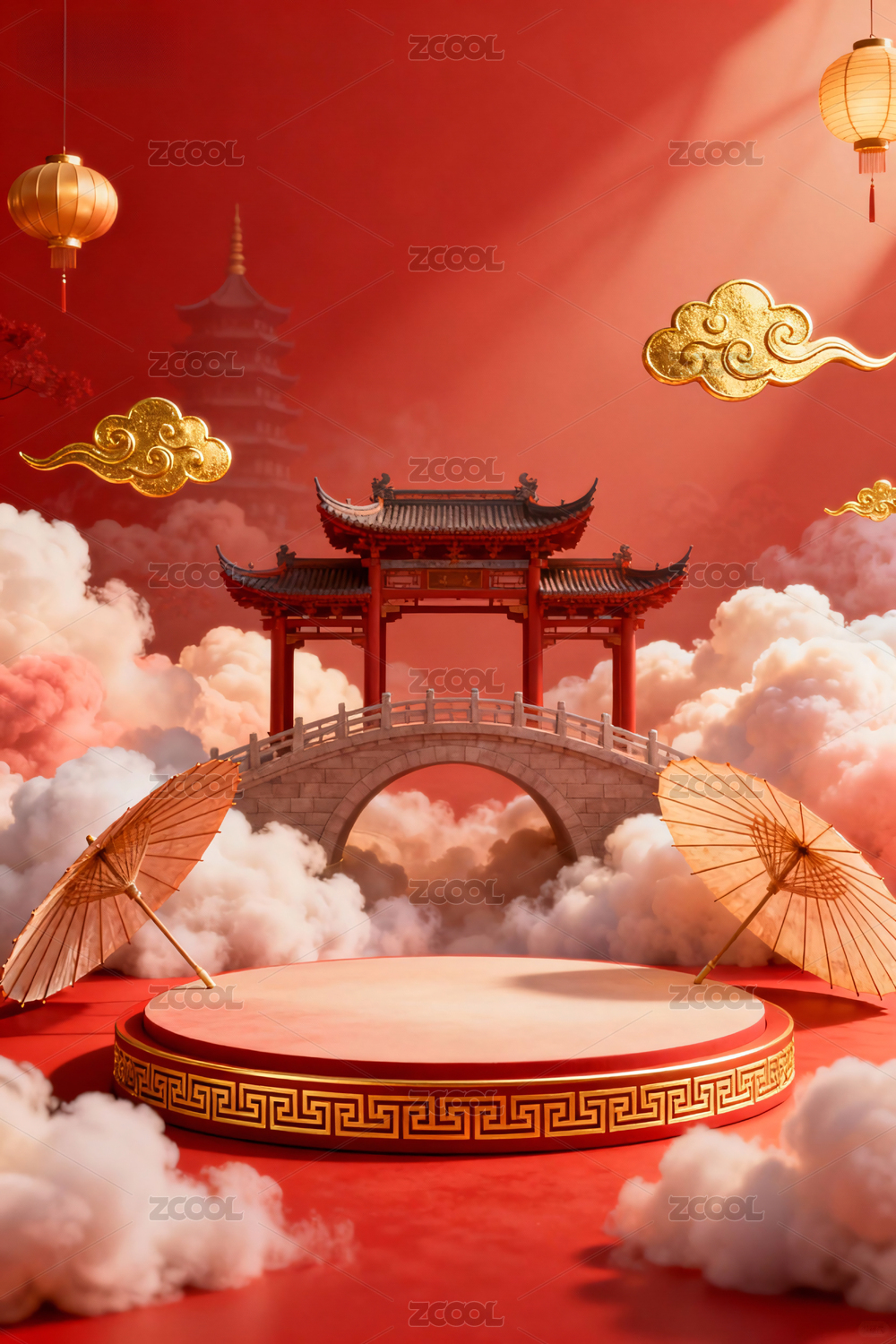 中国风新年春节产品展台背景