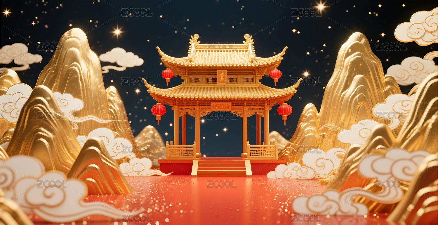 门楼红金国风场景