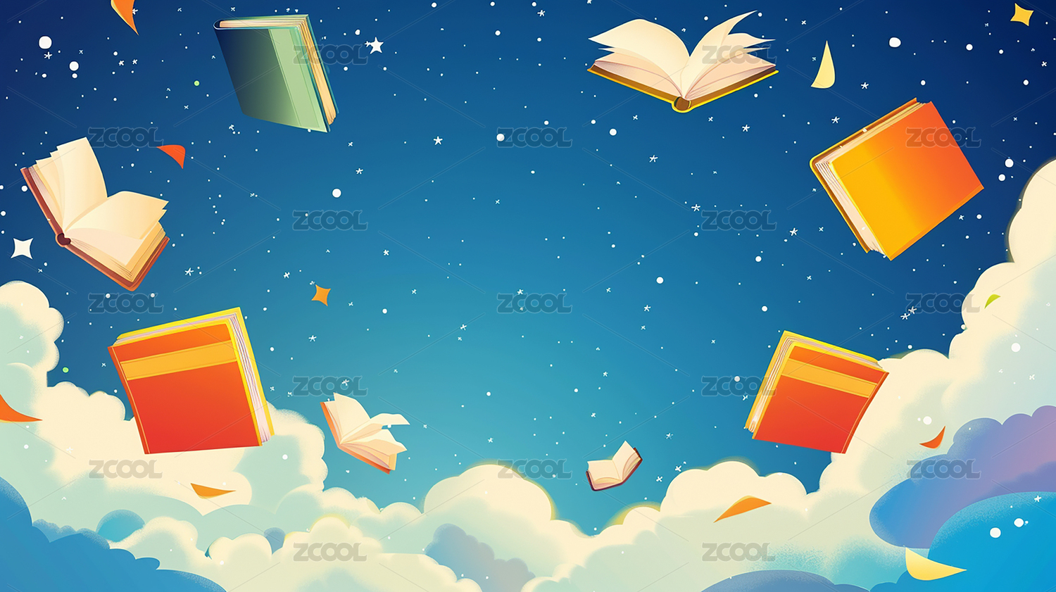 云朵上漂浮的书本插画
