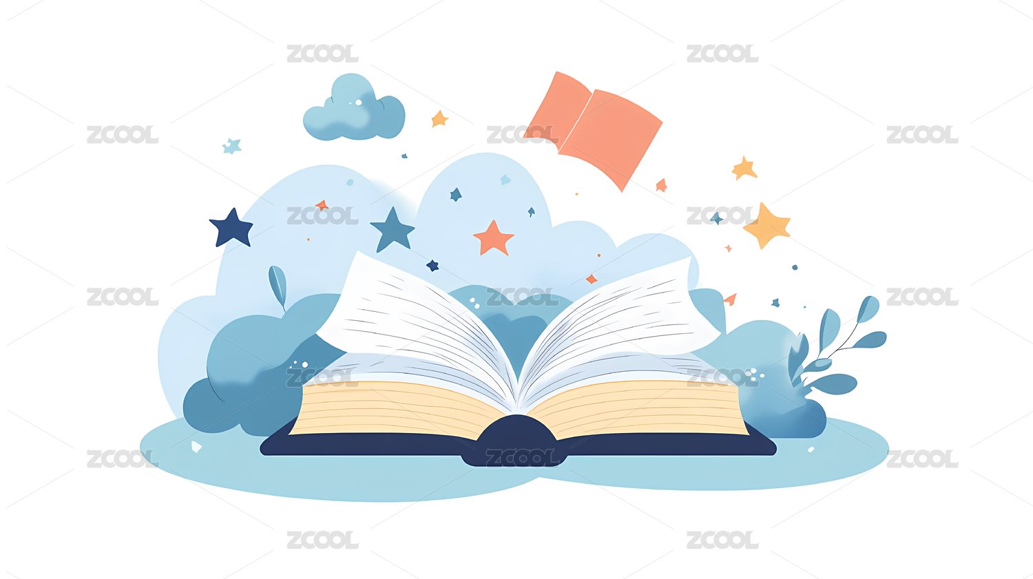 卡通,插画,云朵,教育,知识,书本,书籍