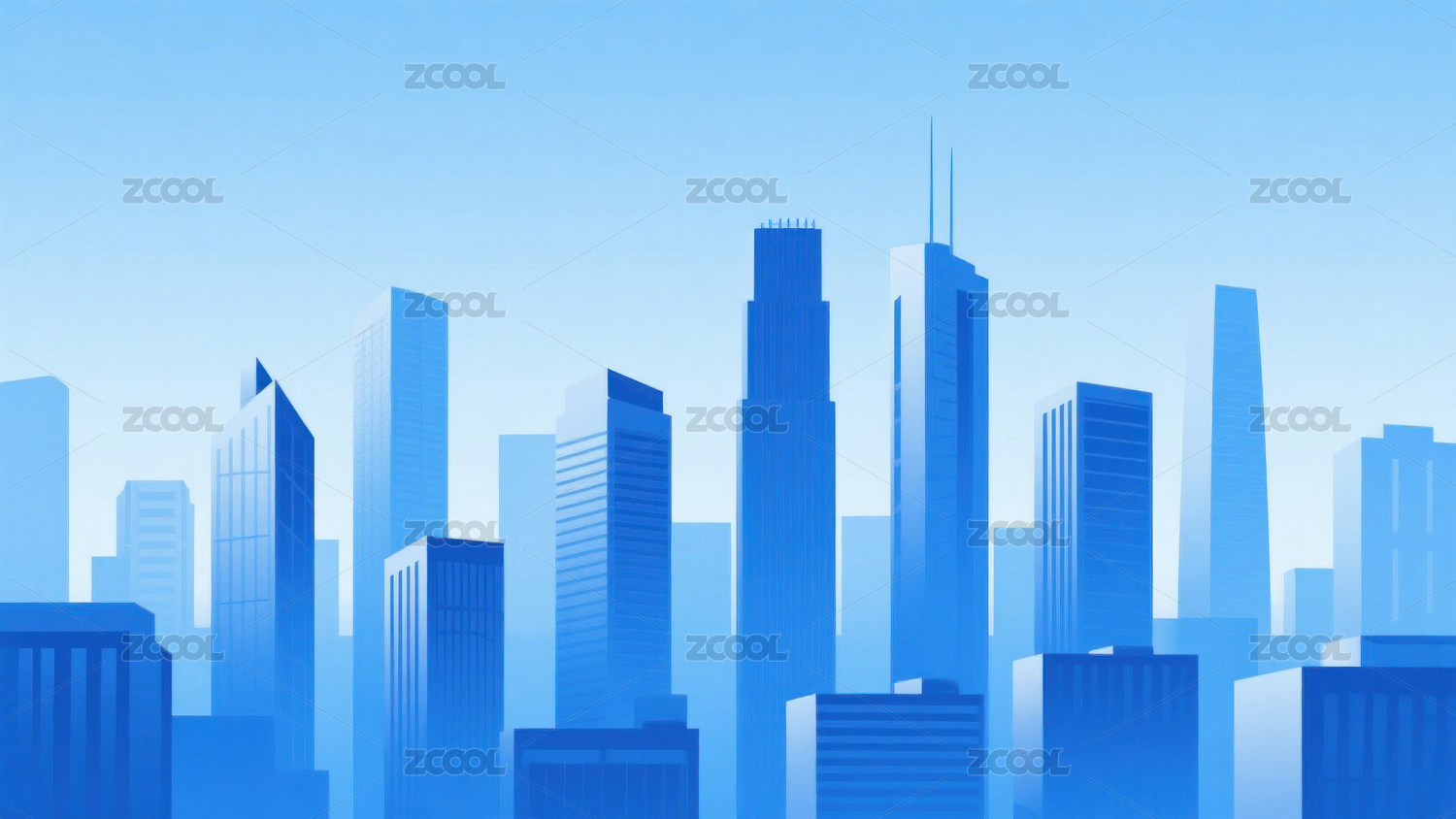 蓝色高楼大厦城市天际线