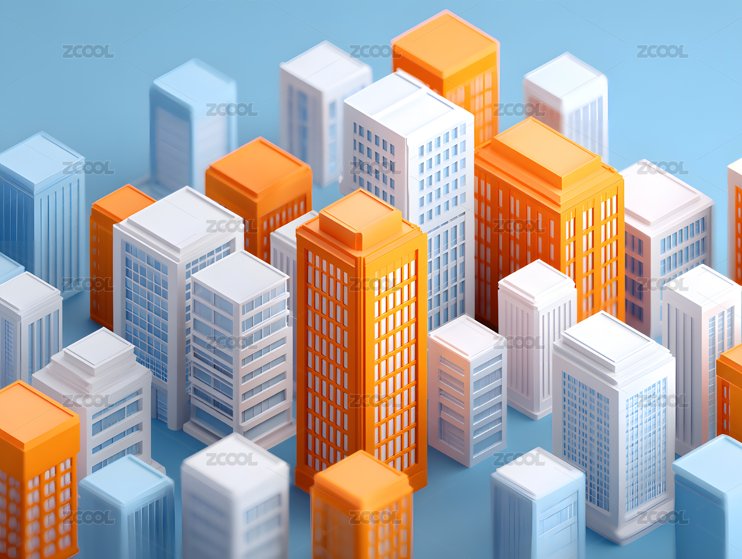 几何模型的城市建筑:高楼与矮楼的3D渲染